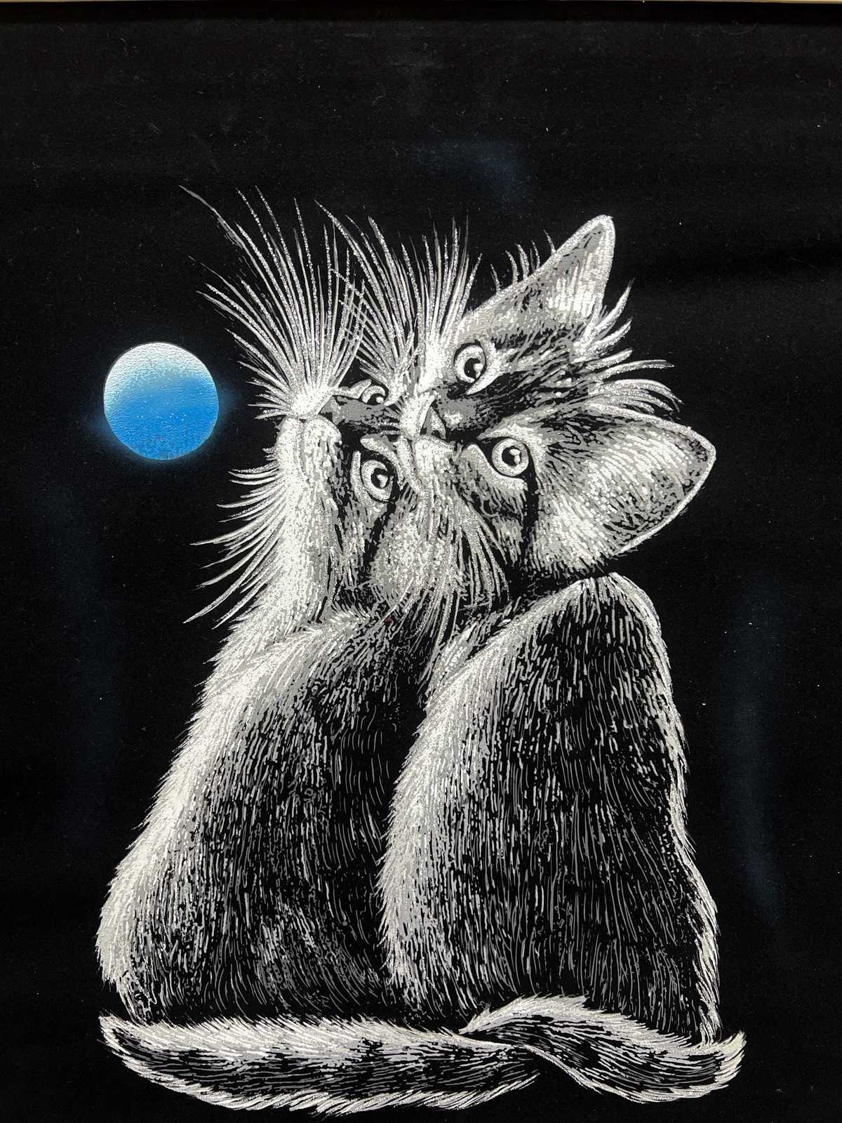 Hand-Painted Black Velvet Artwork, cute kittens velvet picture, glowing in the d