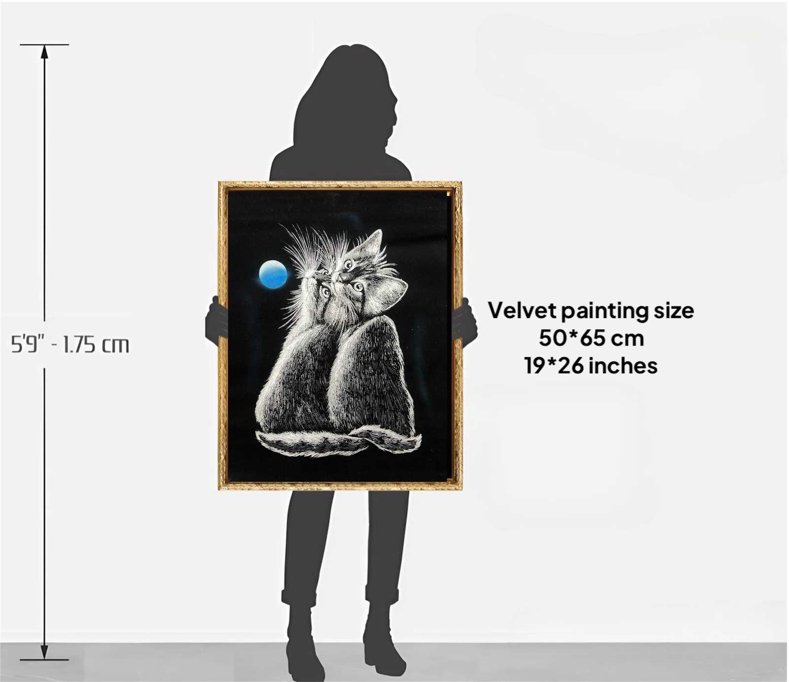 - **Handcrafted Quality:** This velvet painting is made by skilled artisans using high-quality materials, ensuring that every piece is unique and filled with character. The tactile nature of the velvet adds an extra layer of depth and luxury to your decor.