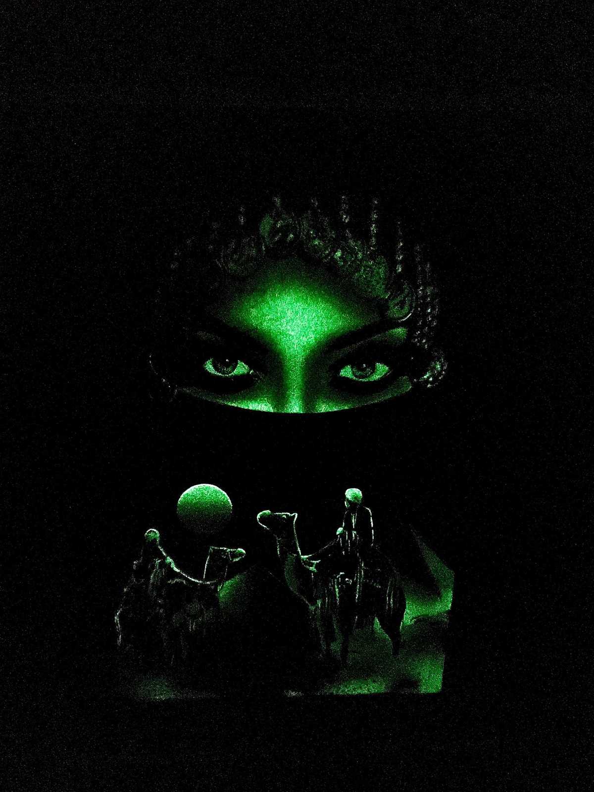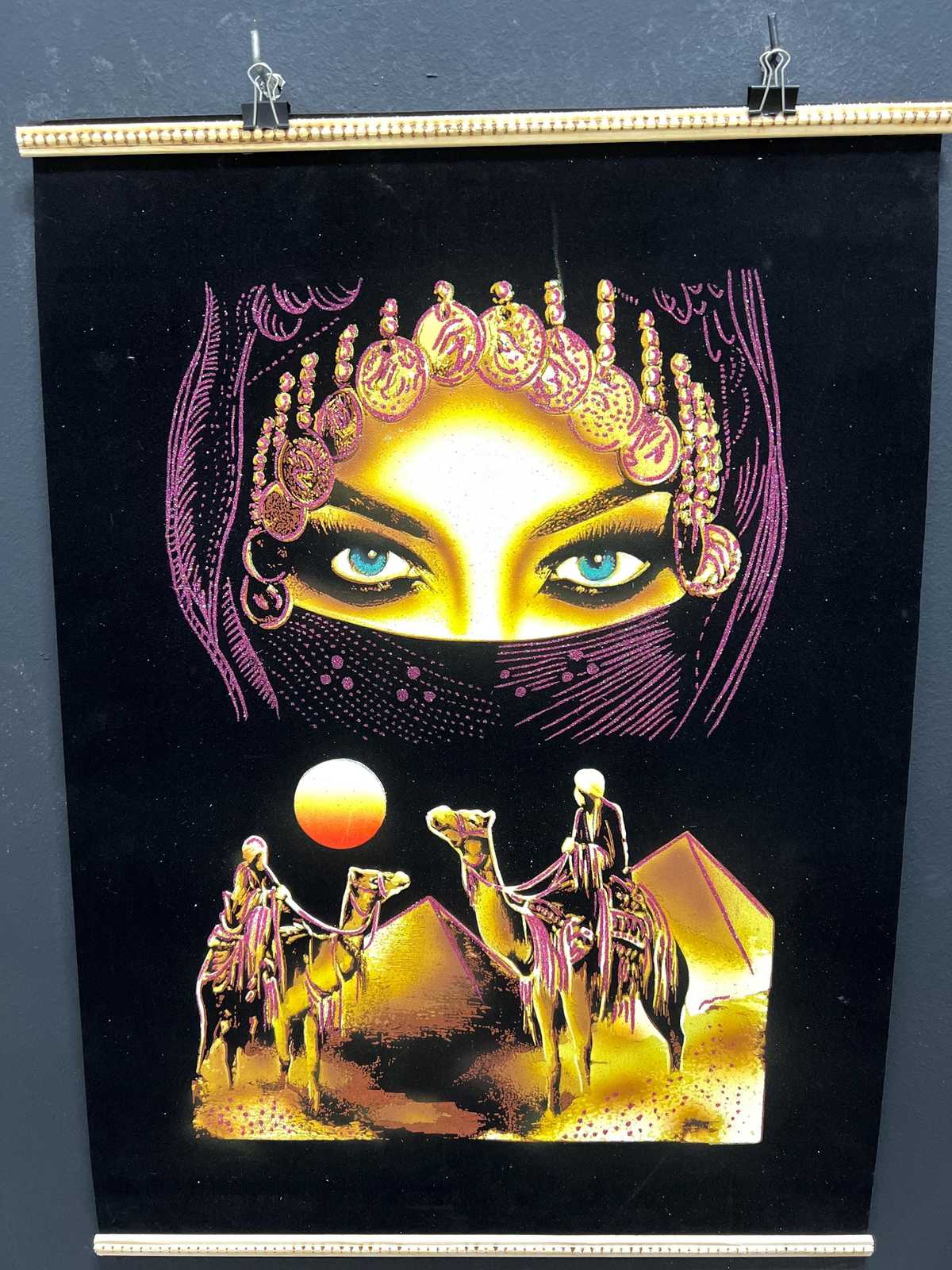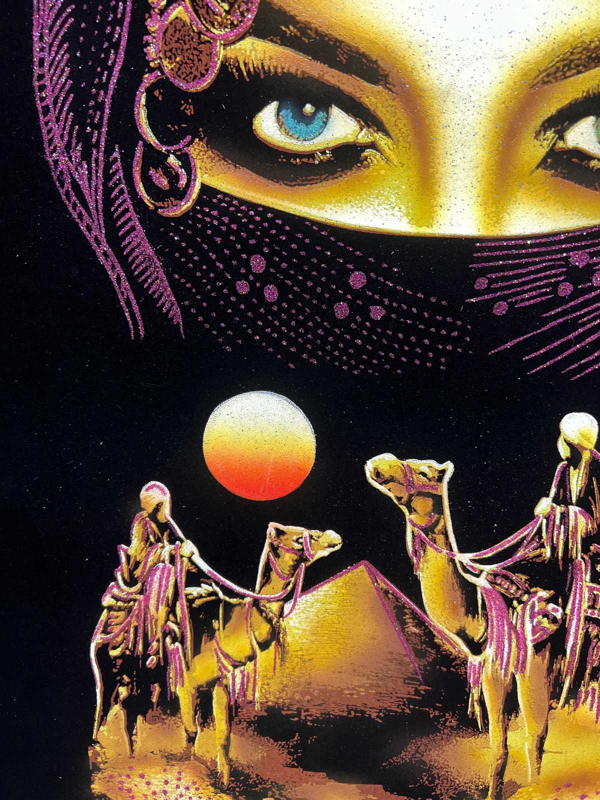 **Handmade Velvet Painting - "Bedouin Woman" (Glow in the Dark)**