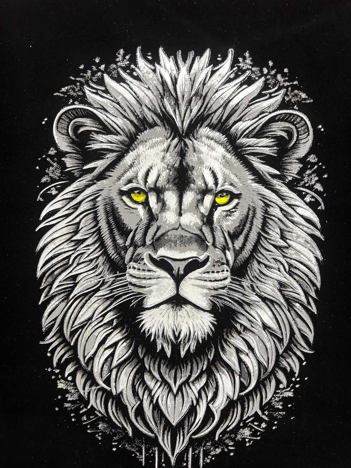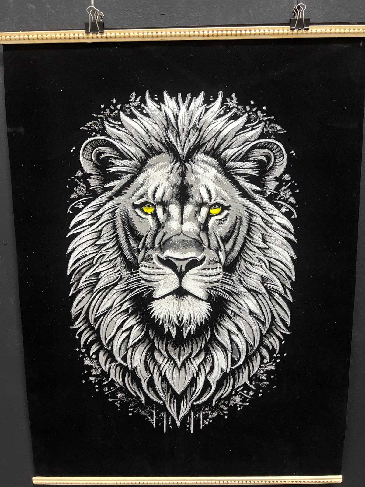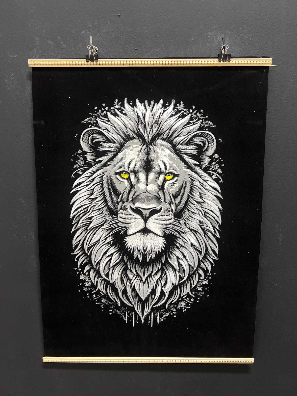 Stunning Hand-Painted Black Velvet Artwork , lion in the night Illustration, Han
