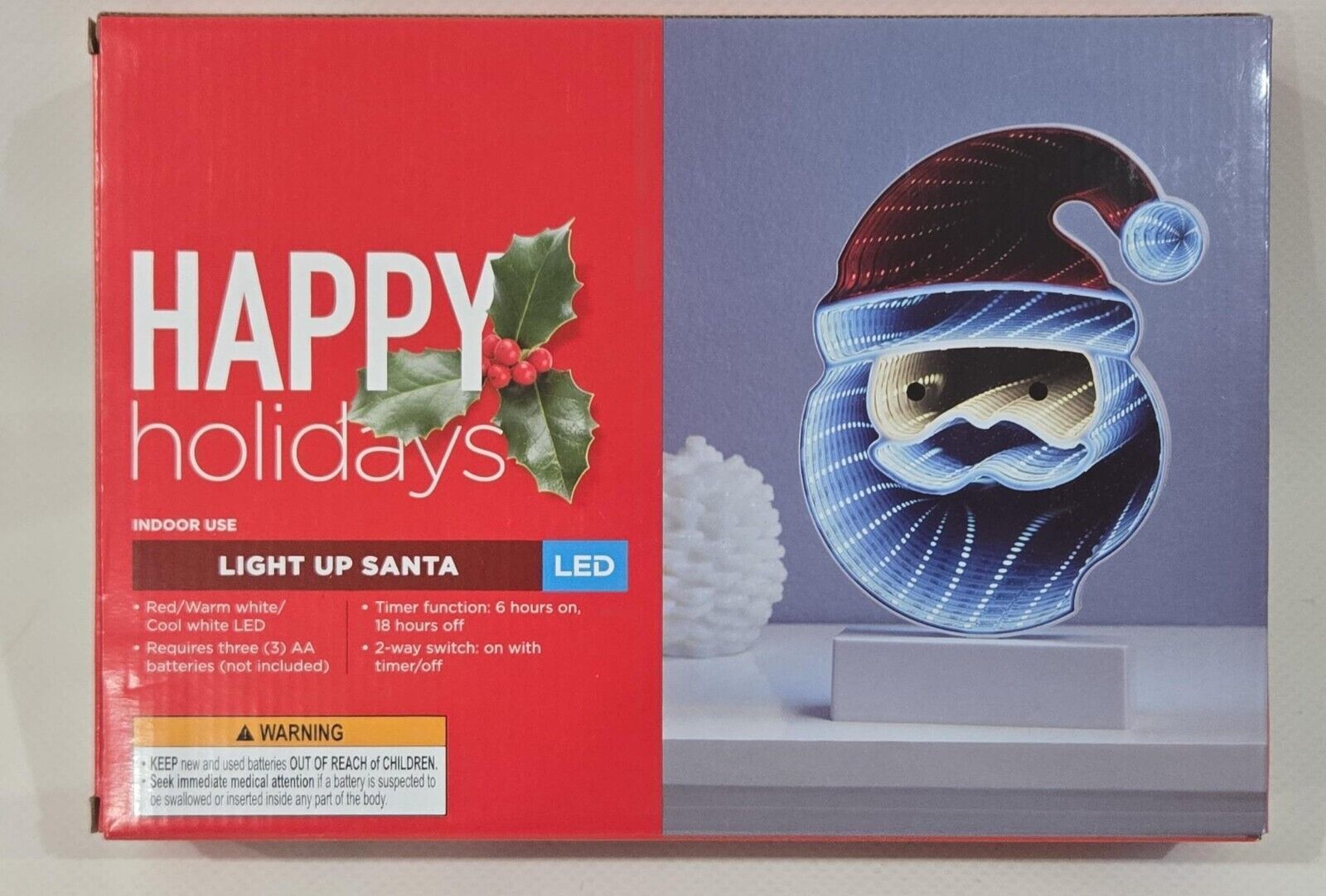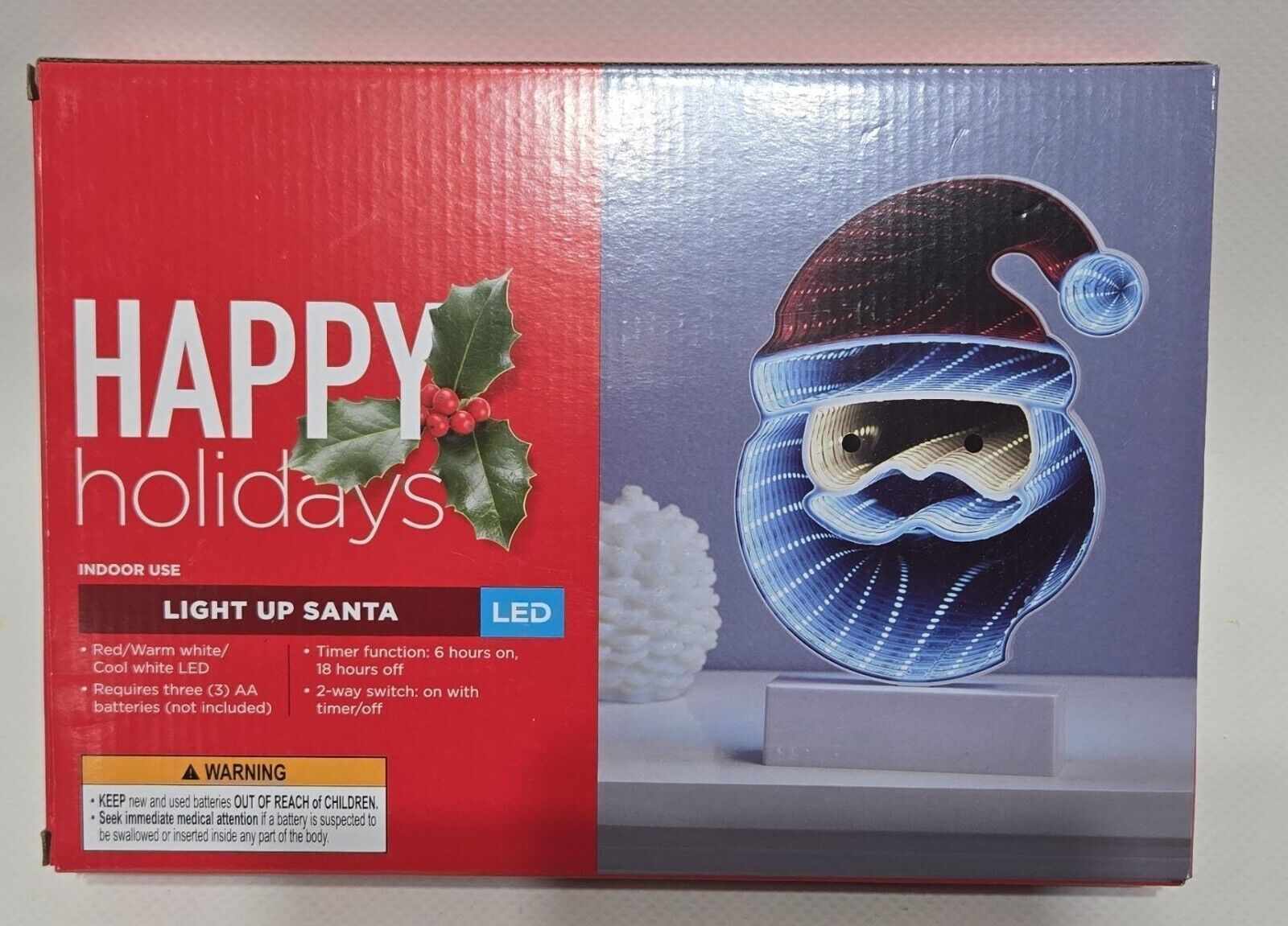 Happy Holidays Infinity display light up Christmas Santa Claus 8 in