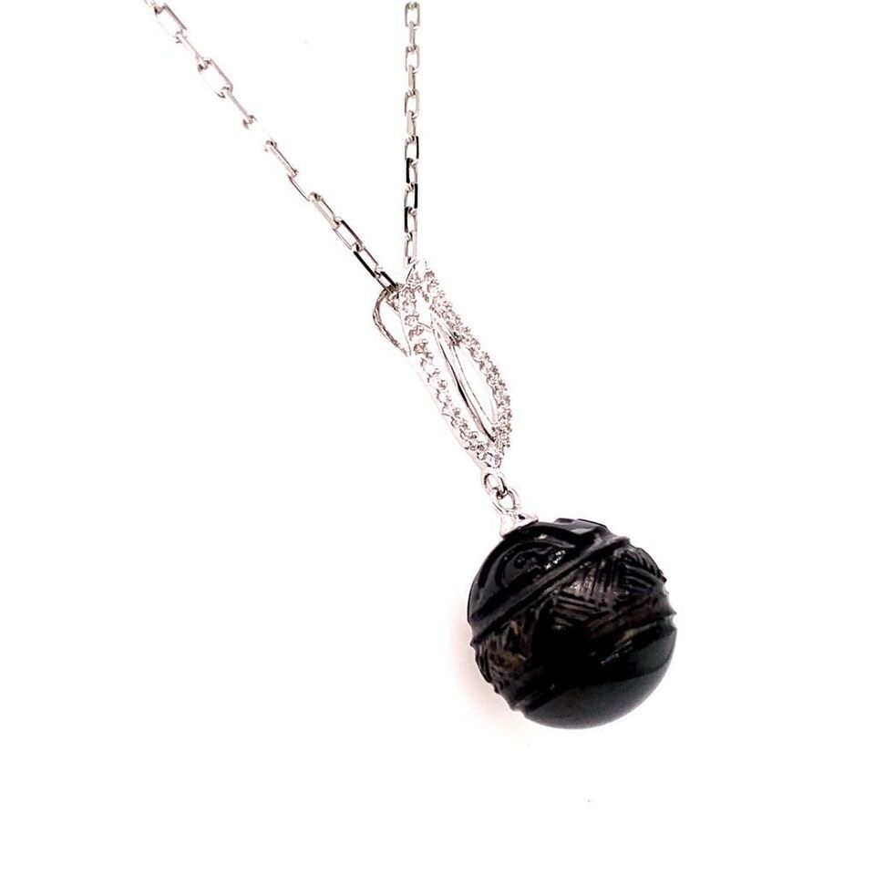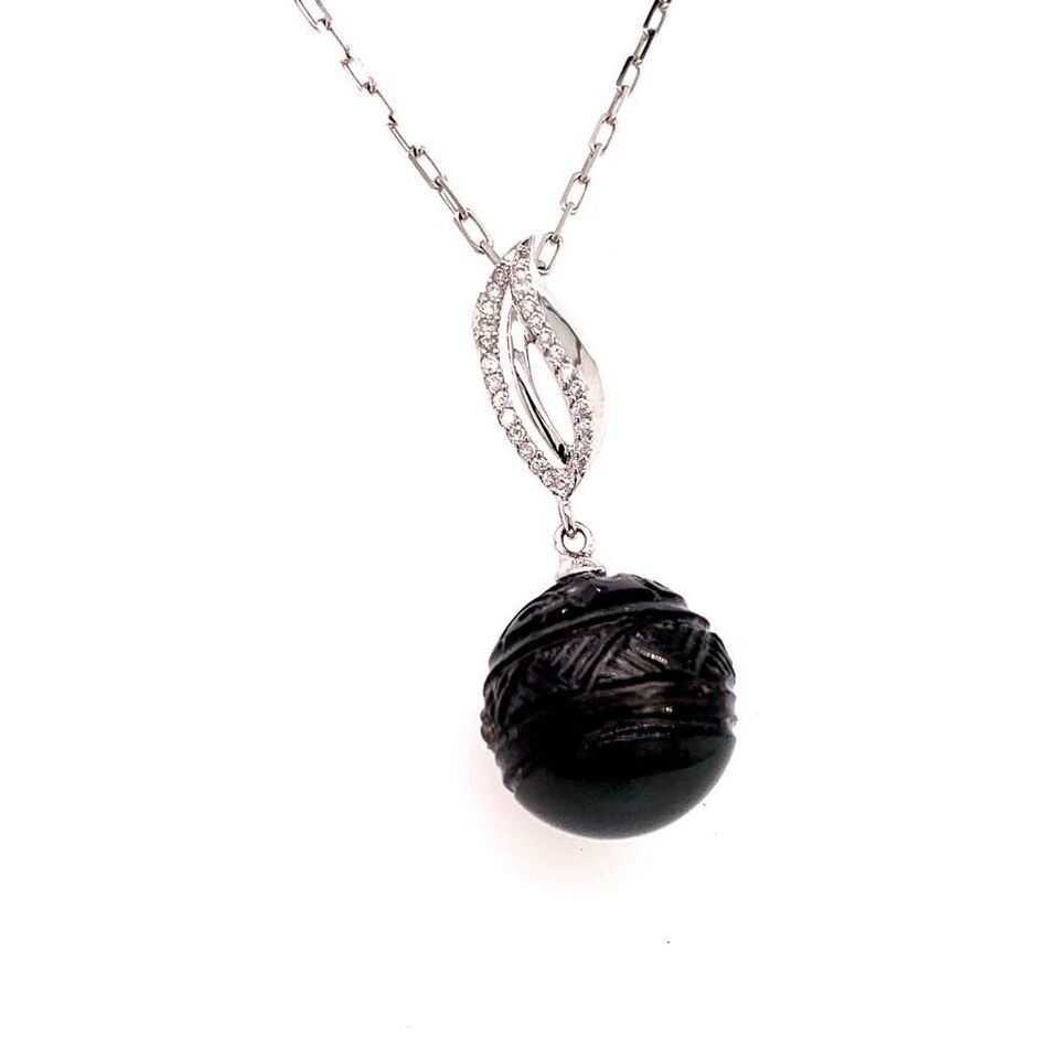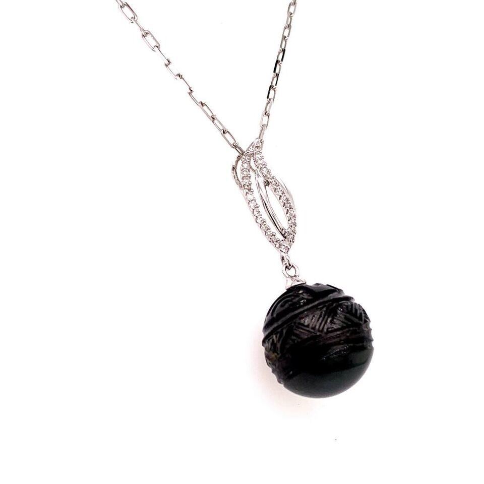 Authenticity Guarantee Tahitian Pearl Diamond Pendant 18k Gold 13.5 mm 16" C...