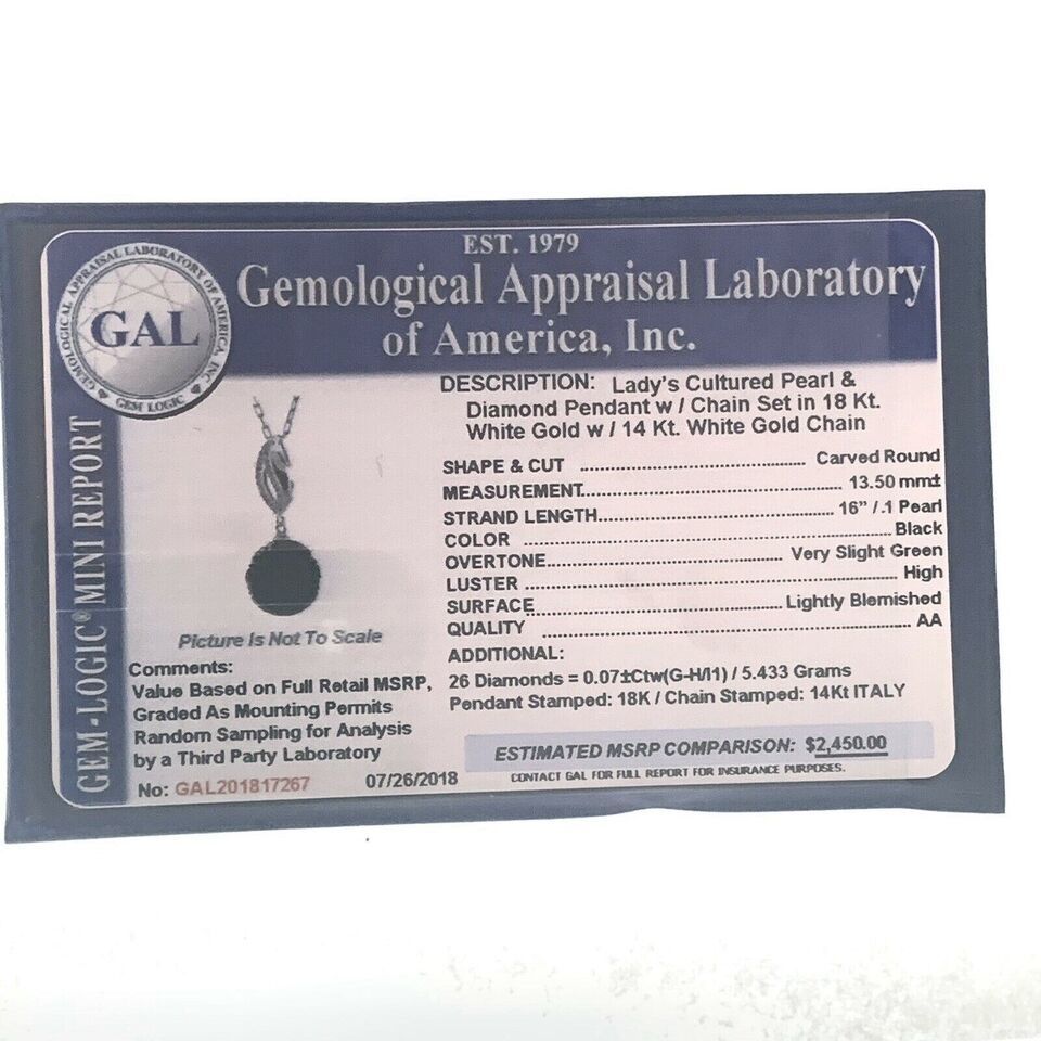 Fine Quality Tahitian Pearl Diamond Pendant 18k Gold 13.5 mm 16" Certified $2,450 817267