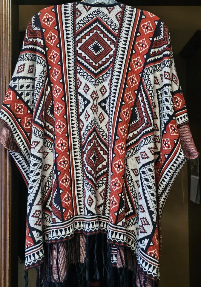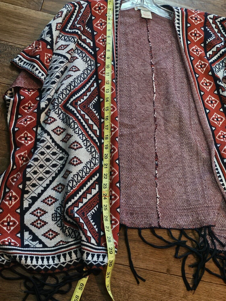 Flying Tomato Open Cardigan Kimono Women's S/M Aztec Tribal Southwest Fringe