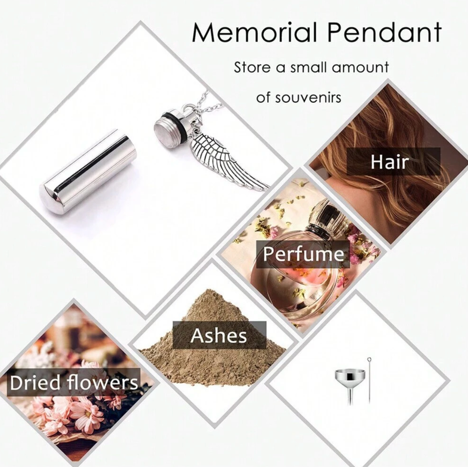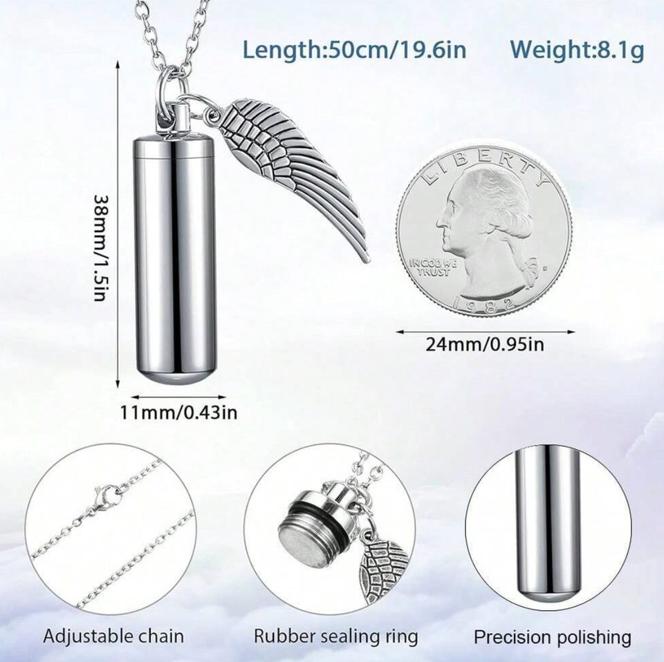 Mini Urn Pendant with Angel Wings ♡ Memorial Keepsake ✩ Cremation Charm Jewelry