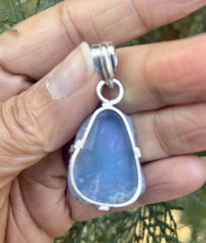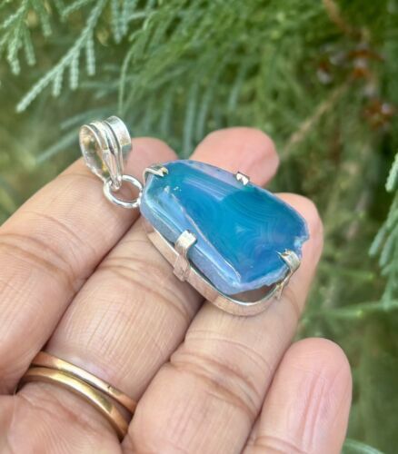 925 Sterling Silver Plated, Turquoise Blue Druzy Geode Agate Stone Pendant 13