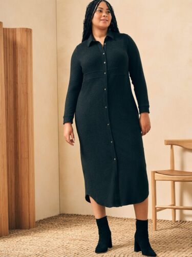 Faherty Women's Large Olive Green Legend Sweater Dress Melange Twill Button Up