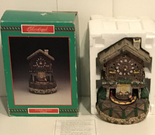 House Of Lloyd Christmas Around The World Cuckoo Chalet Music Clock. 10" tall by 7" wide. It is in its original box. It is in good condition. Great piece to decorate your Christmas's village.