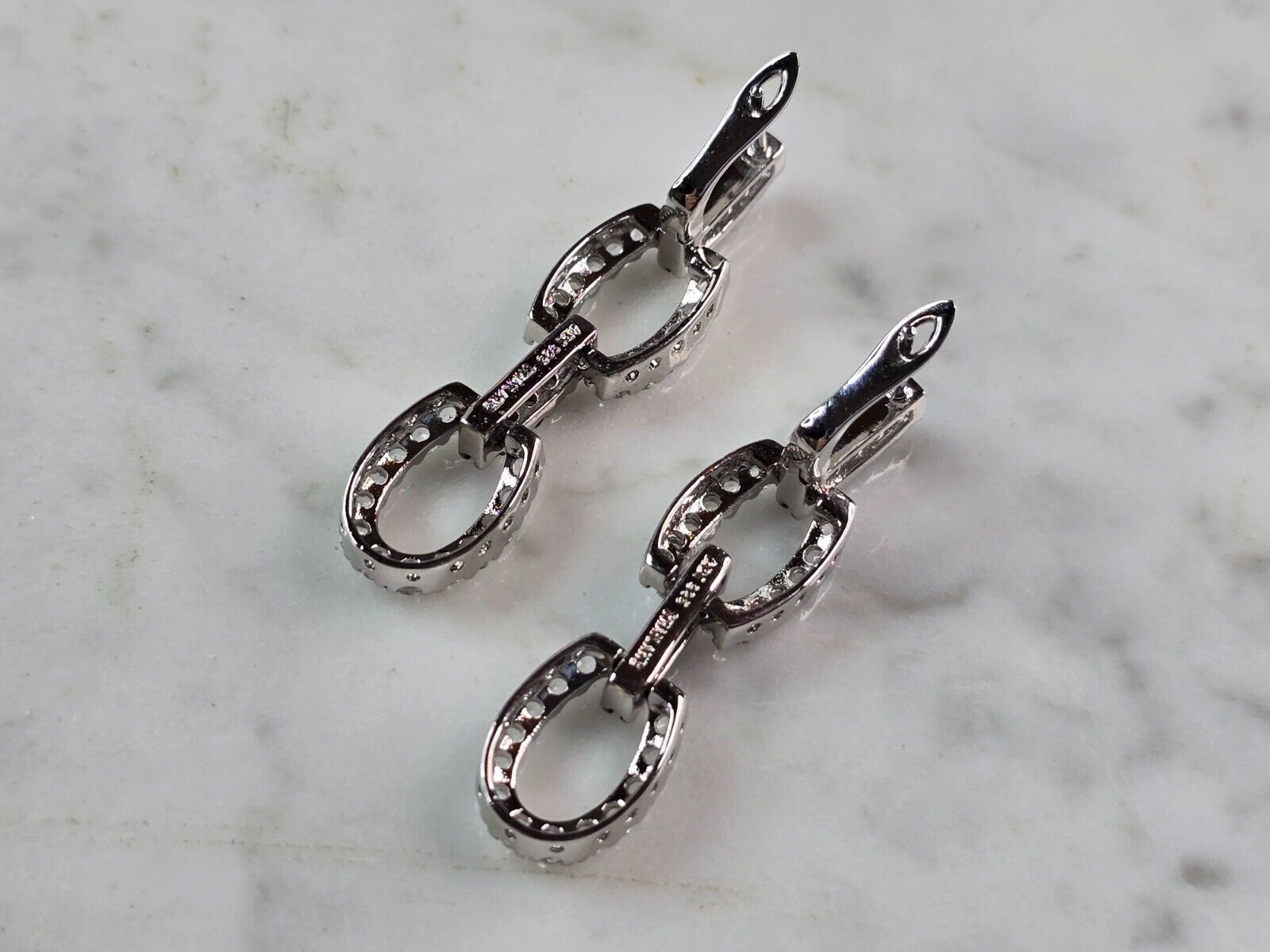 A PAIR OF WOMENS STERLING SILVER CZ MODERNIST DANGLE EARRINGS. EARRINGS WEIGH 8.4g AND MEASURES 1 5/8" LONG BY 3/8" WIDE. ANY QUESTIONS, PLEASE DO NOT HESITATE TO ASK. BE SURE TO CHECK OUT SOME OF MY OTHER GREAT ITEMS UP FOR SALE. THANK YOU