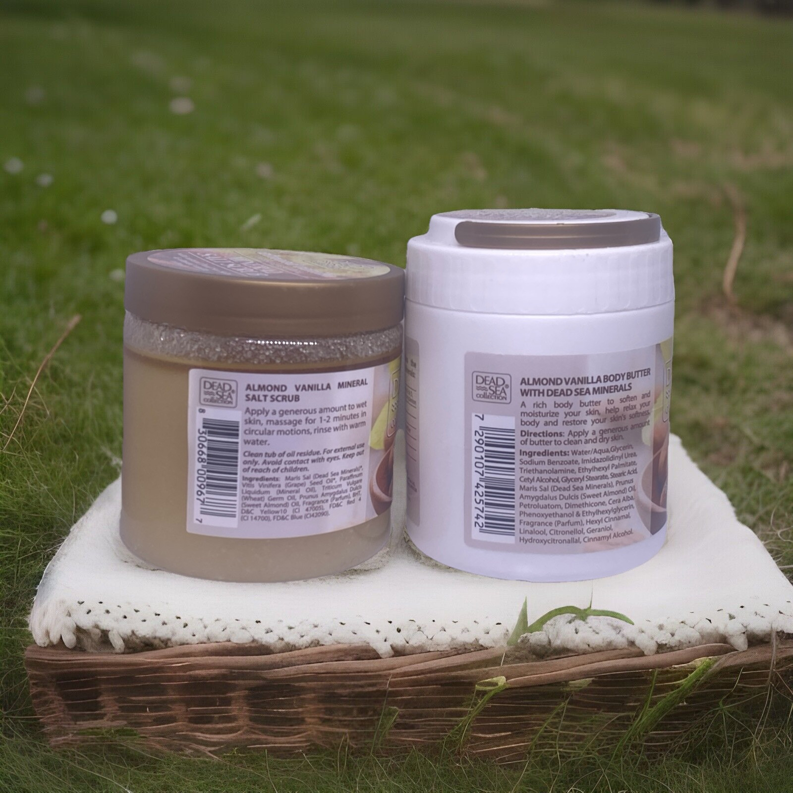 2X Dead Sea Almond Vanilla body Salt Scrub & body butter with dead sea minerals