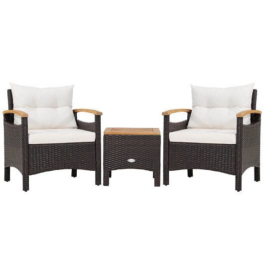 3 Piece Patio Rattan Furniture Set with Removable Cushion-Off White