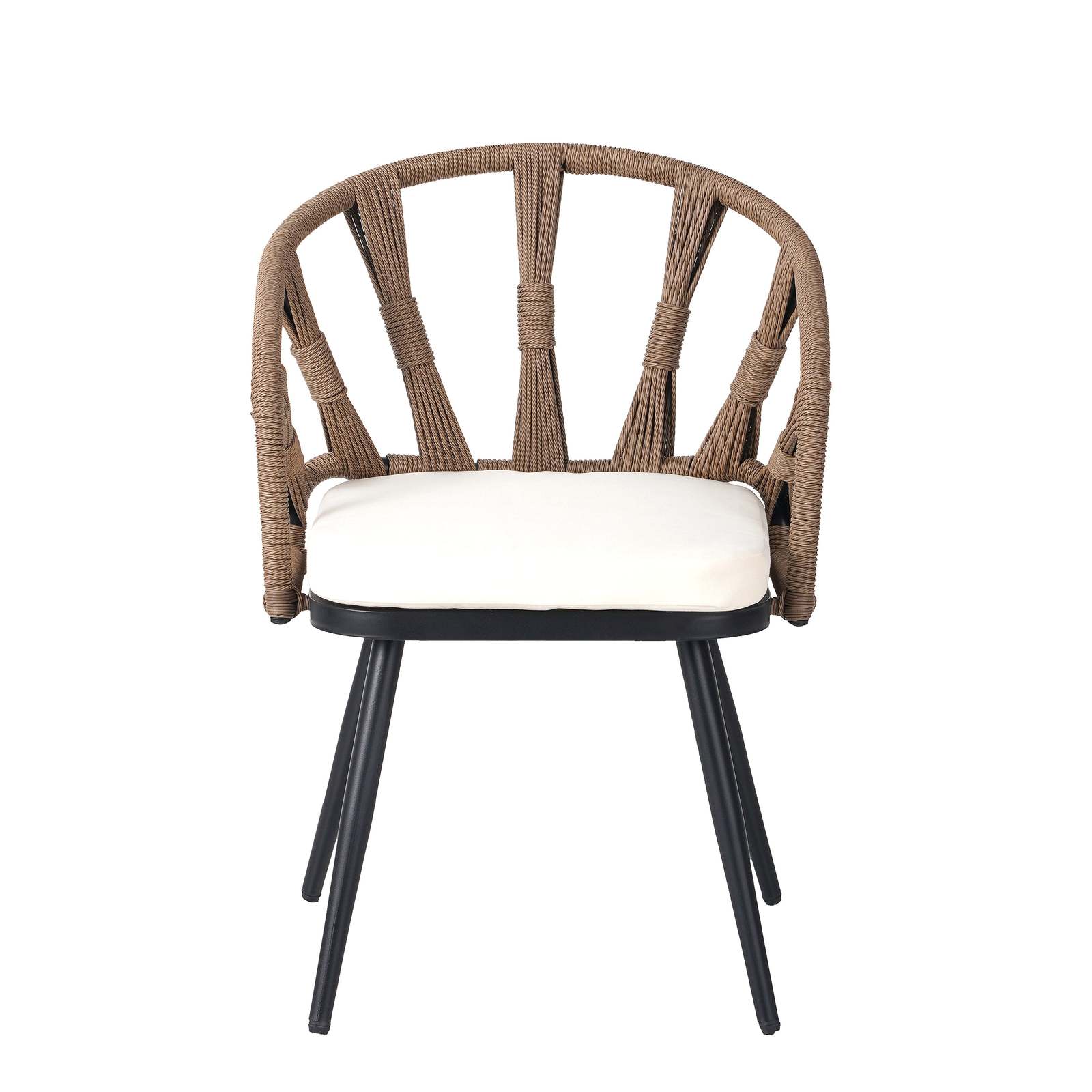 [Modern PE Rattan Chairs]:The chairs are made from durable PE rattan, which offers a sleek, modern design with linear weaving patterns. This unique construction provides a comfortable yet sturdy seat that is ideal for outdoor use, blending both style and functionality.