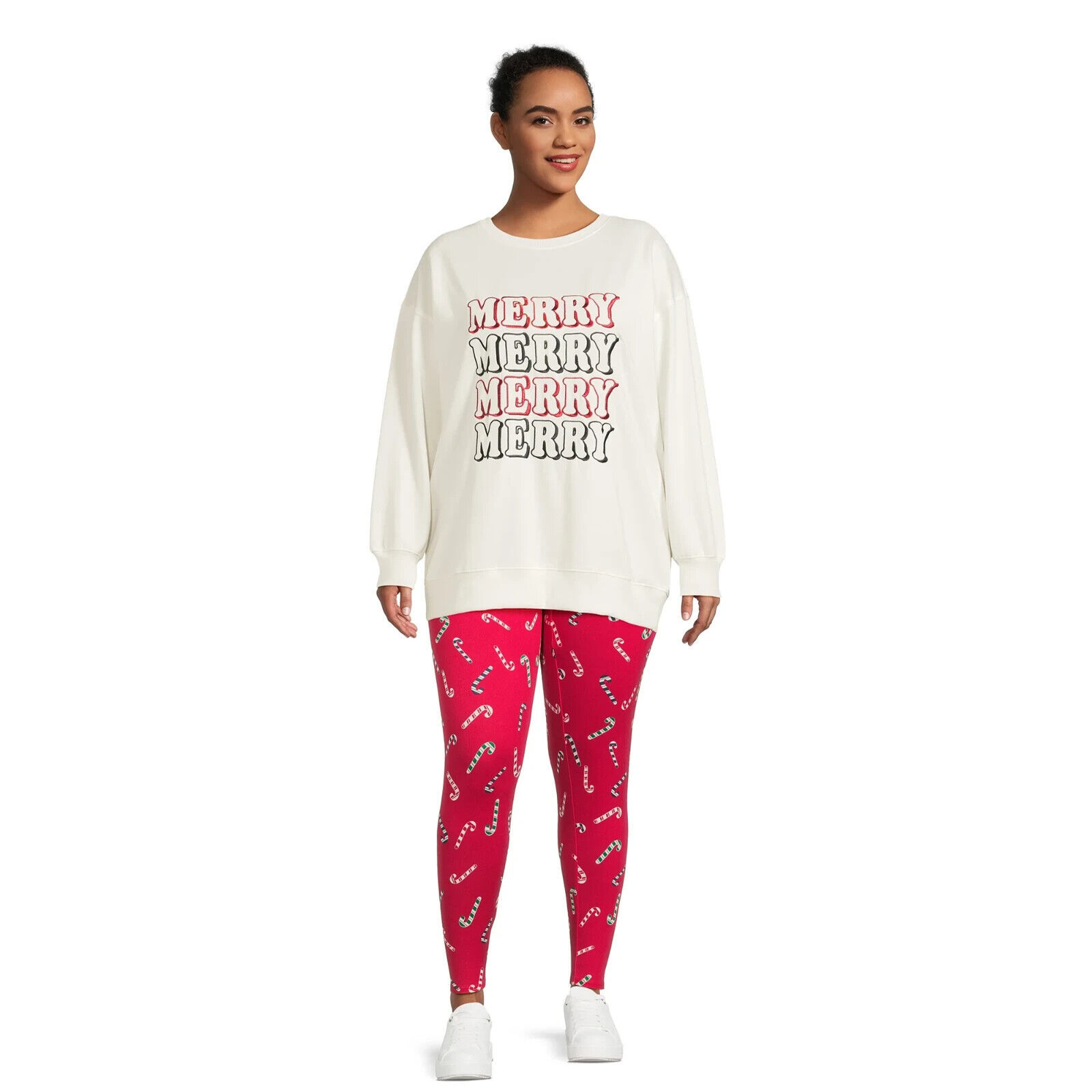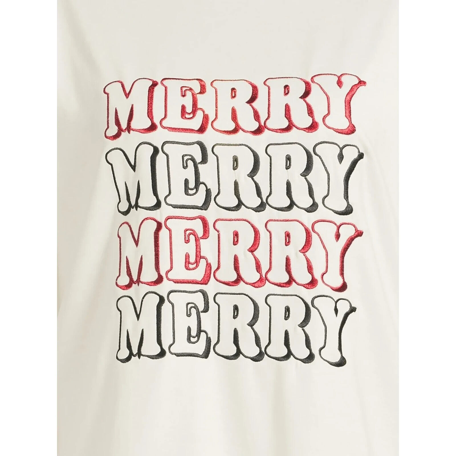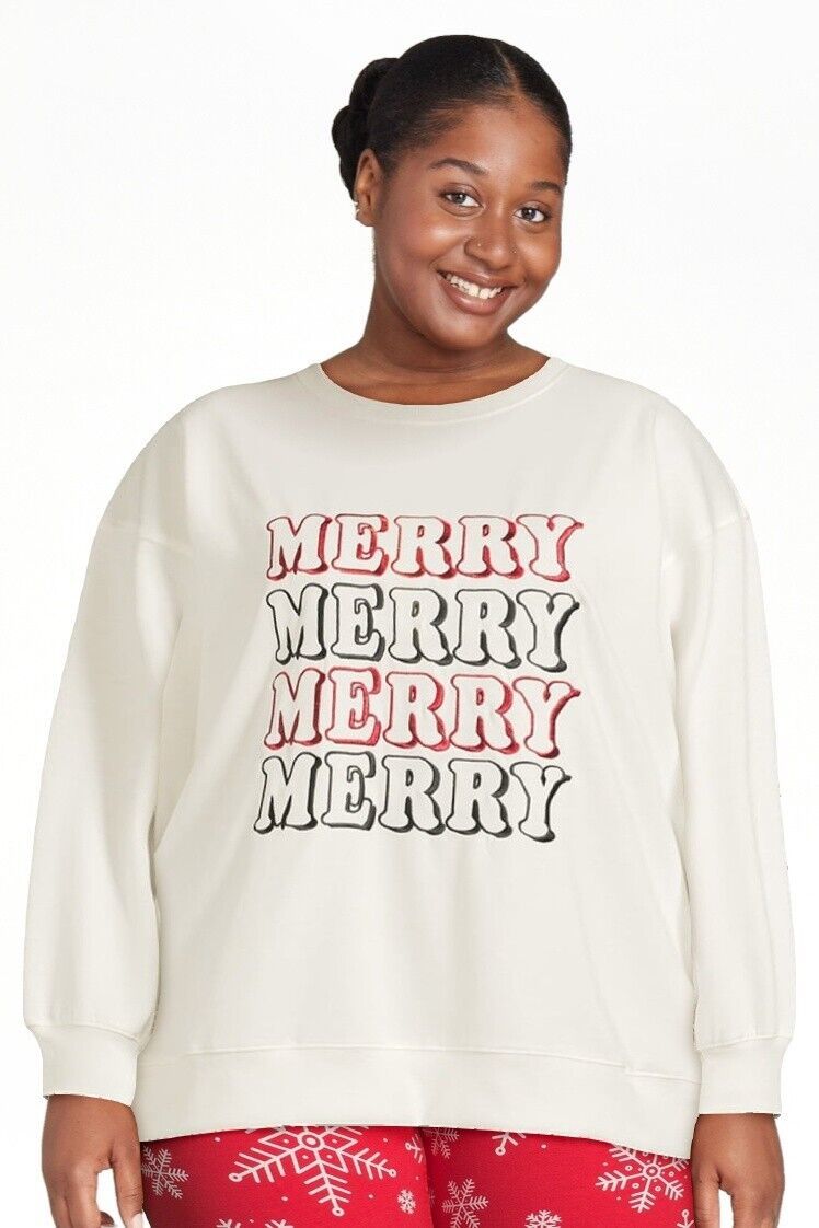 Feeling Festive Women's Merry Christmas Embroidered Sweatshirt, White Size 2X(20W-22W)