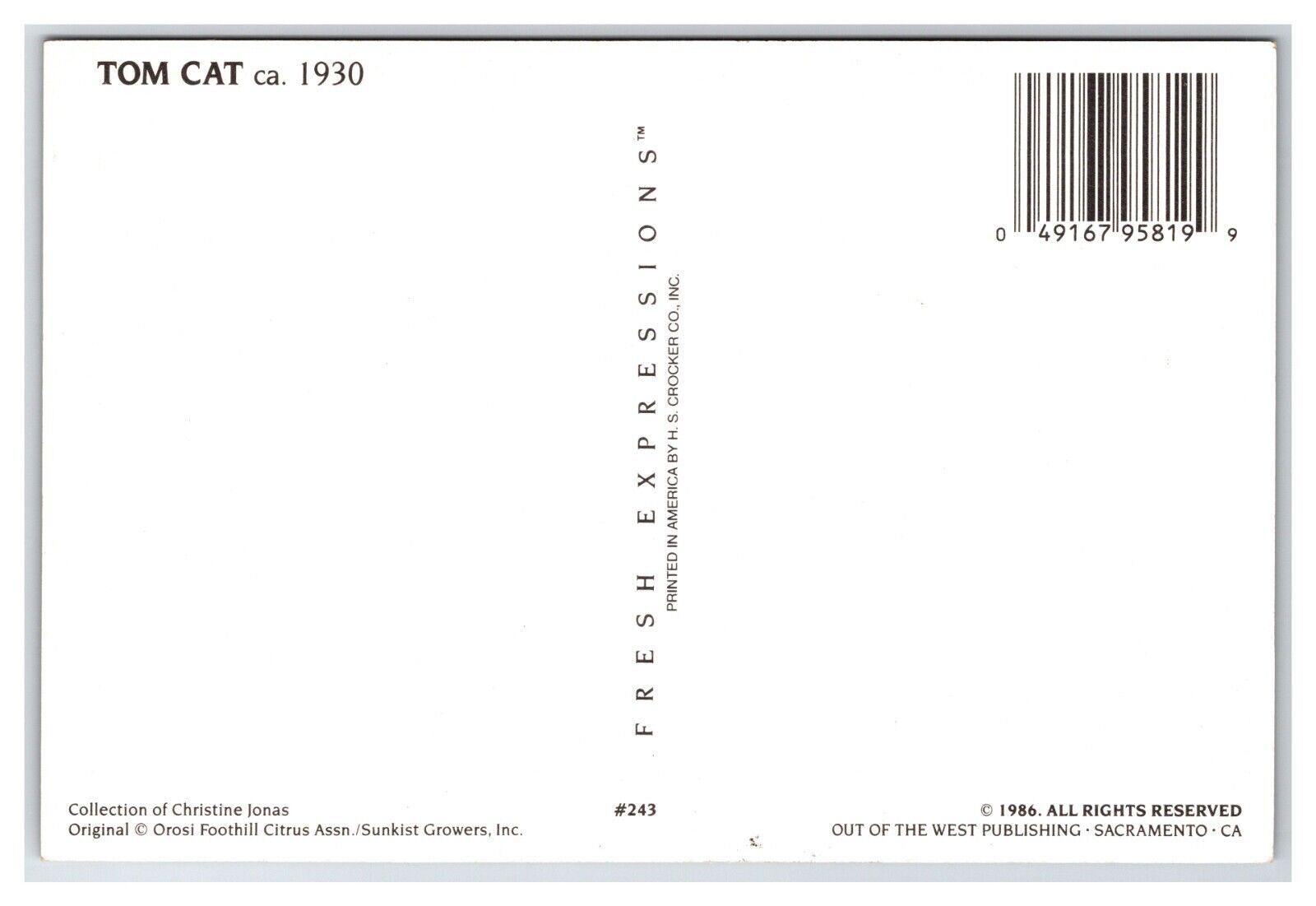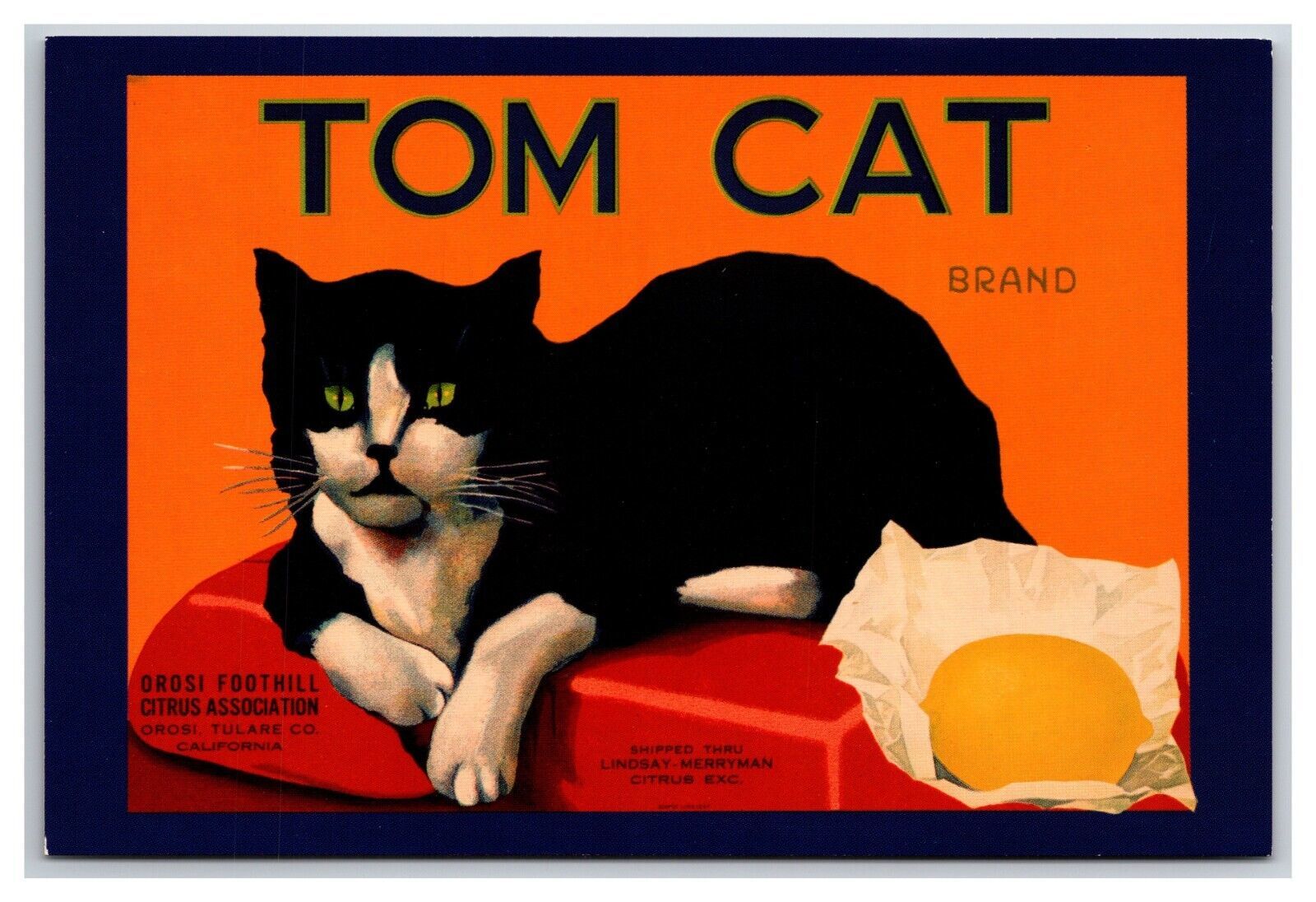 1930 Tom Cat Fruit Label Orosi Tulare County CA UNP Contiental Postcard Z8