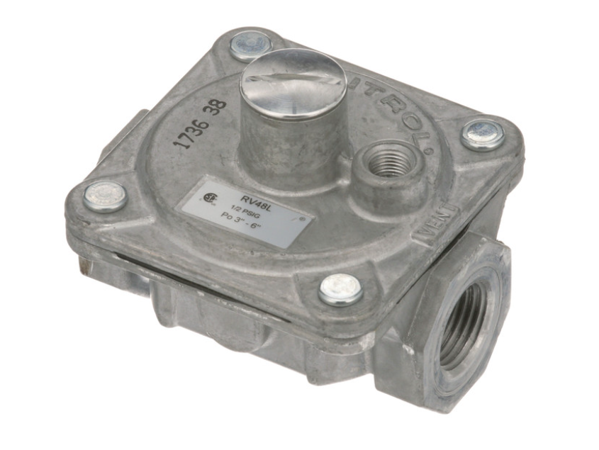 The AllPoints RV48L, 1736 38 Natural Gas Pressure Regulator is designed for precise gas pressure control, ensuring safe and efficient operation in commercial kitchen appliances. With a 1/2" inlet/outlet size, this OEM regulator provides reliable and consistent gas flow for optimal performance.
