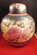 1- Covered Chinese Urn, 6 1/2" tall floral decorations multicolor [82B-BASKTRACK6