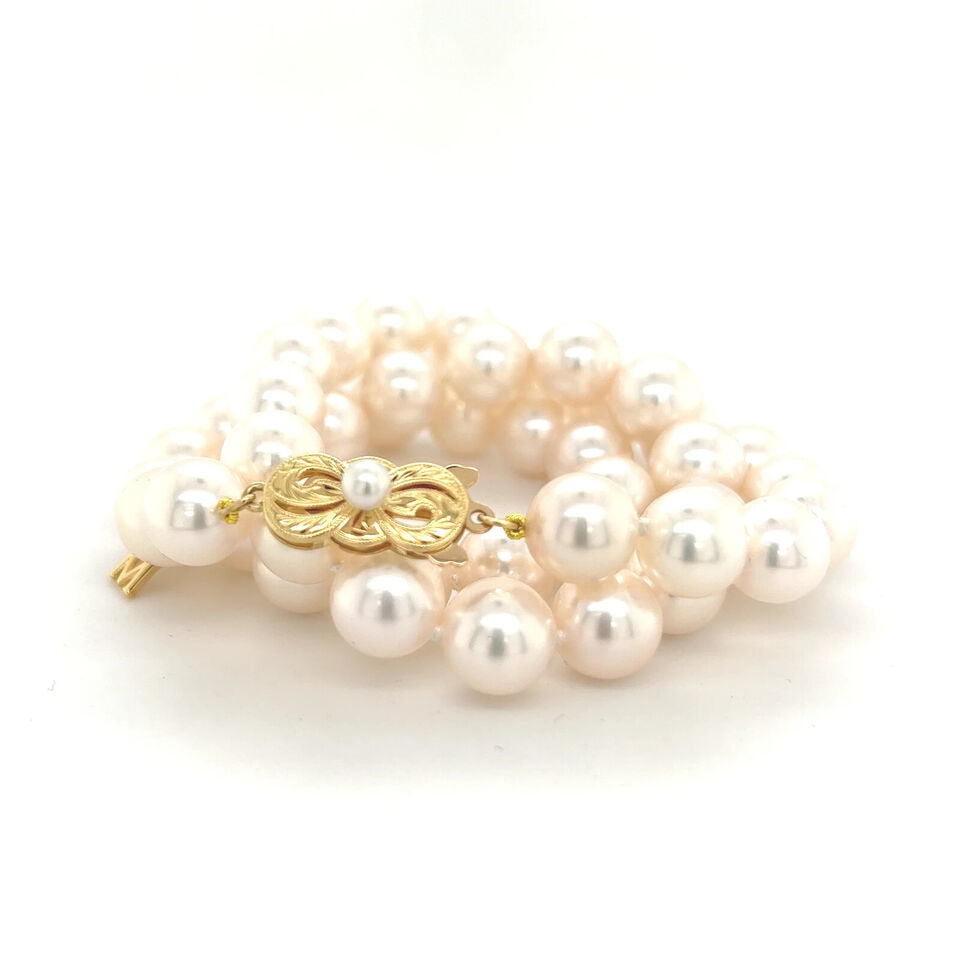 Authenticity Guarantee Mikimoto Estate Akoya Pearl Necklace 18k Gold 9.5 mm ...