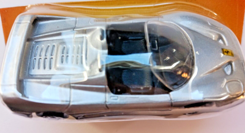 This is a new still in it's package condition Maisto Special Edition Silver Ferrari model F50 sports supercar. It's new, still under it's plastic, on a cut card that once held other cars. It's a Hot Wheels Sized Car (about 1:64 scale) with nice details,