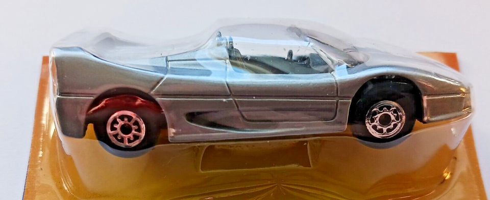Ferrari F50 Silver Die Cast Metal Super Car, a Maisto 1:64 Scale, F 50 Ferrari, New on it's Cut Card Condition, Made in the 1990's.
