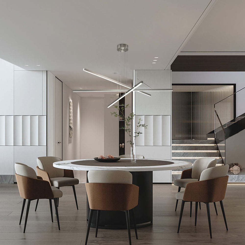 48' Modern LED Chandelier - Geometric 3-Arm Design, Adjustable Hanging, Sleek Metal Finish