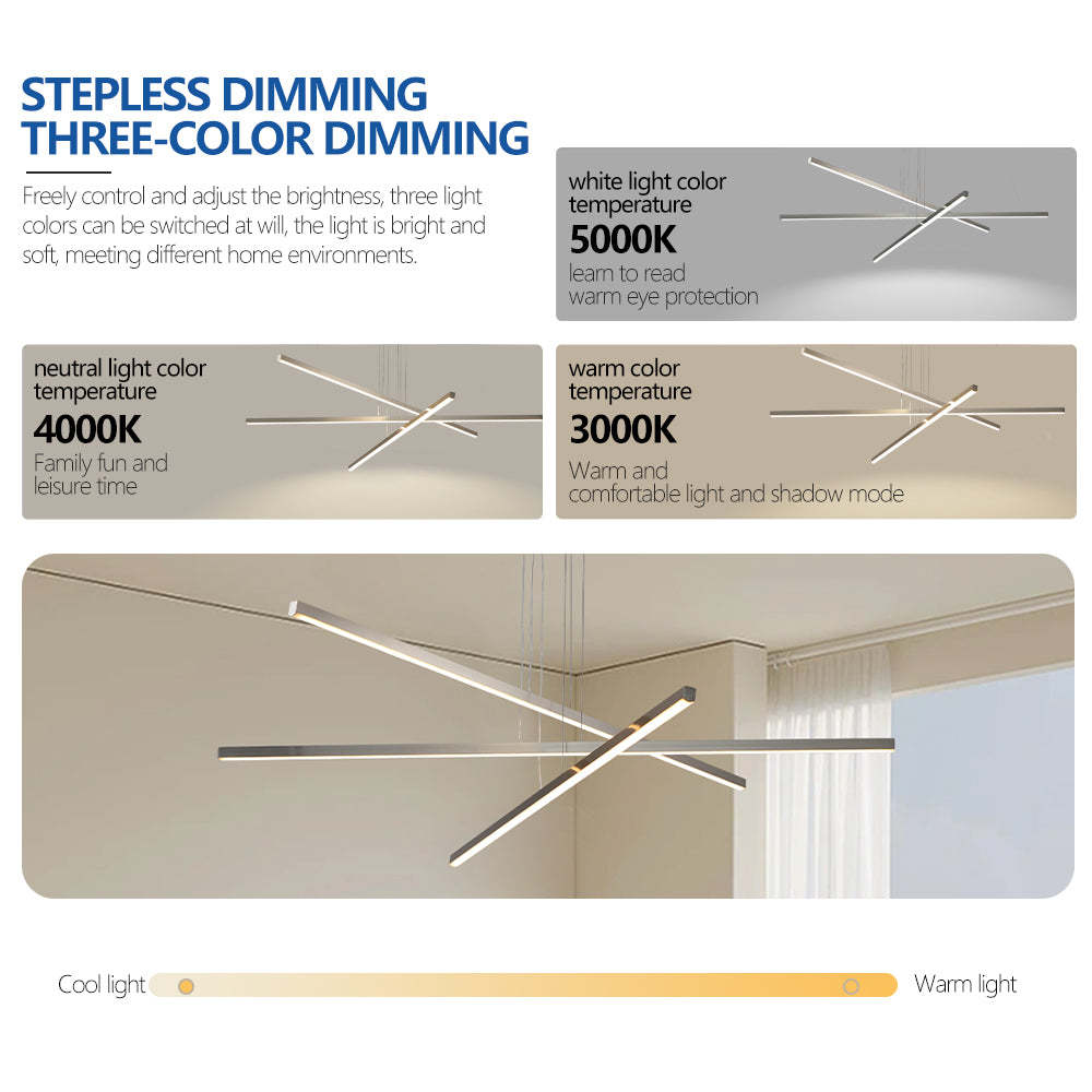 Details: Introduce a modern, minimalist vibe to your home or office with this adjustable LED linear pendant light. Its geometric design and simple lines create a spiritual ambiance, while its cable locking pins allow for easy post-installation height adjustments. With stepless brightness adjustment, this lamp is perfect for any space.LED: Integrated LED Modern Pendant Light.ADJUSTABLE: Cable locking pin allow the suspension height to be easily changed post-install.DIMMABLE: Dimmable LED (15% - 100%).Installer Tip:( DO NOT CUT WIRES) attached to the fixture under any circumstance. Excess cable should be neatly looped and tucked into the canopy.