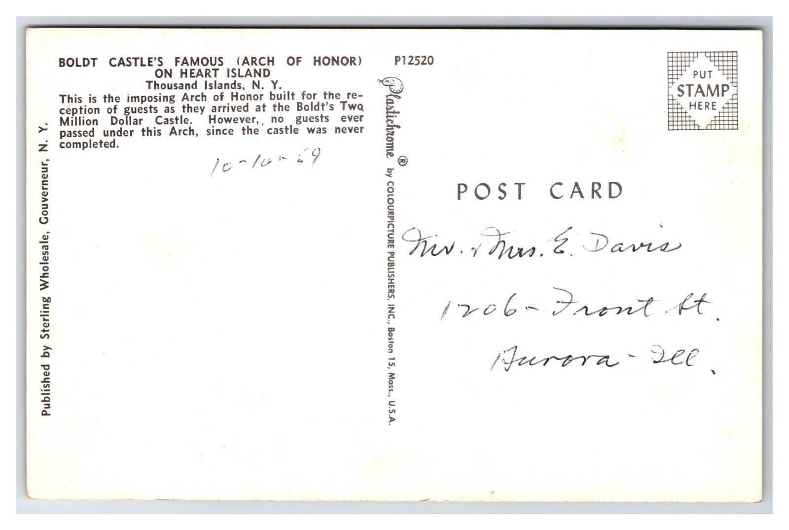 Boldt Castle Heart Island Thousand Islands New York NY UNP Chrome Postcard XB9