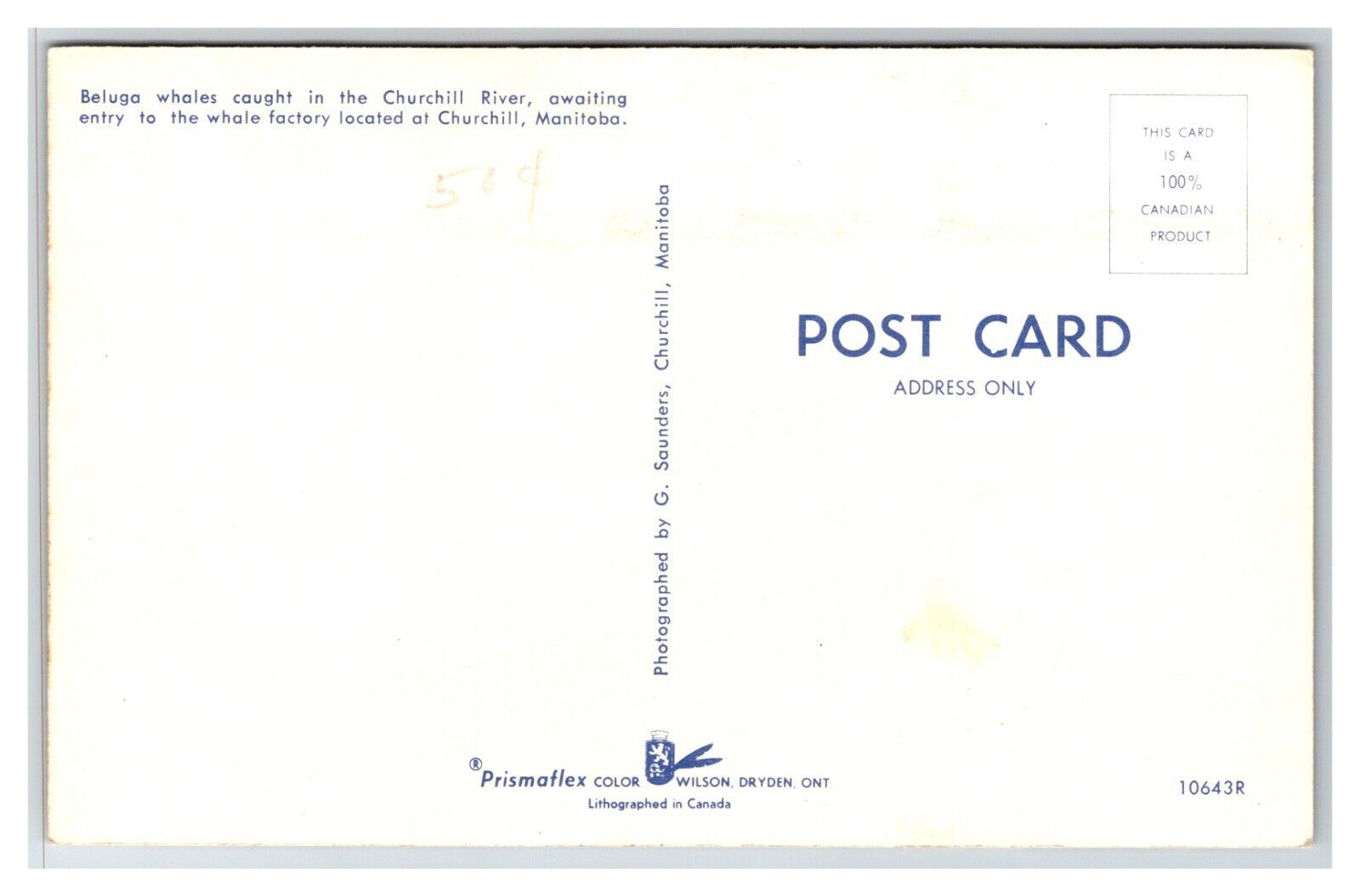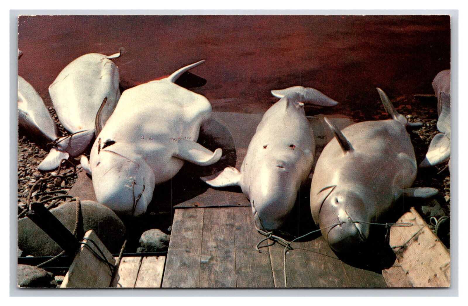 Beluga Whale Caught on Churchill River Manitoba Canada UNP Chrome Postcard K18