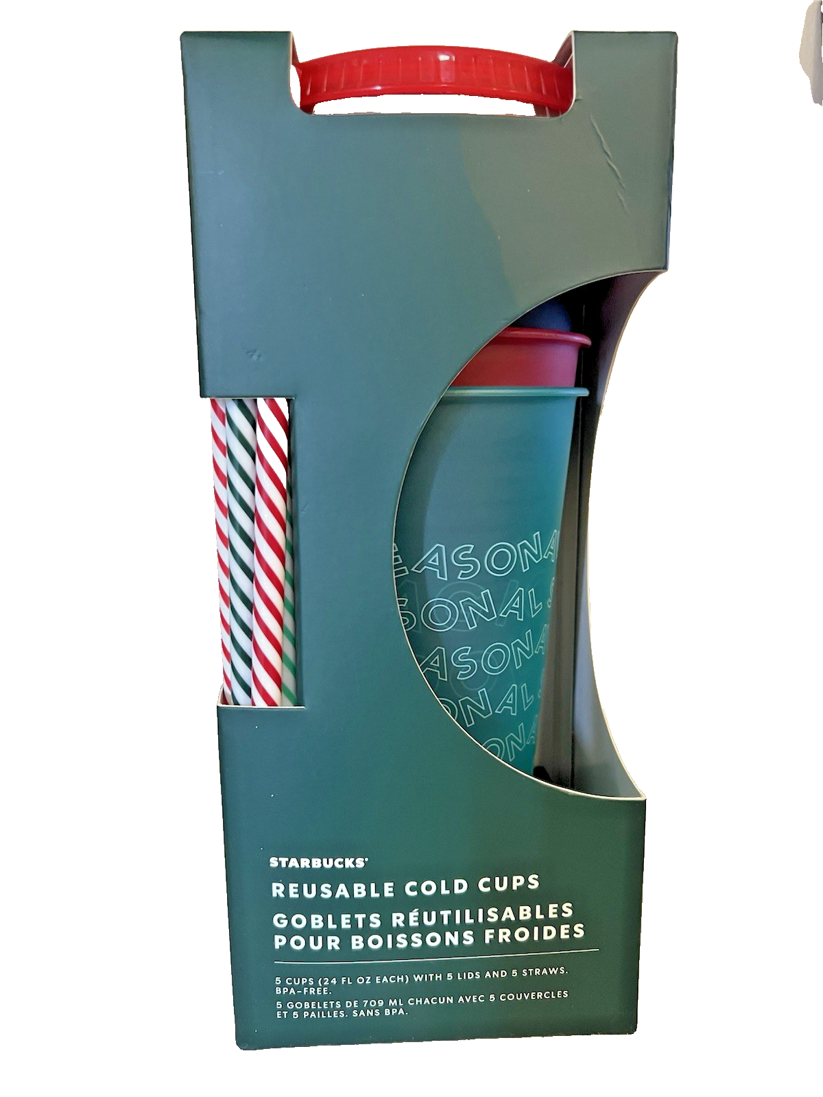 Starbucks Holiday 2019 Limited Edition Reusable Cold Cups With Straws 24 Oz 5 Ct