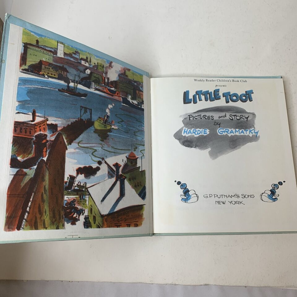 This vintage hardcover book titled "Little Toot" by Hardie Gramatky was originally printed in 1939 by Weekly Reader. The book is a first edition and has not been modified. It is a collectible item for those interested in antique and rare books. The story is about a little tugboat and its determination to tow a heavy load. The illustrations were done by the author himself, making it a unique addition to any book collection. The book is written in English and has no special attributes. It was published in the United States and is a great piece of American history.