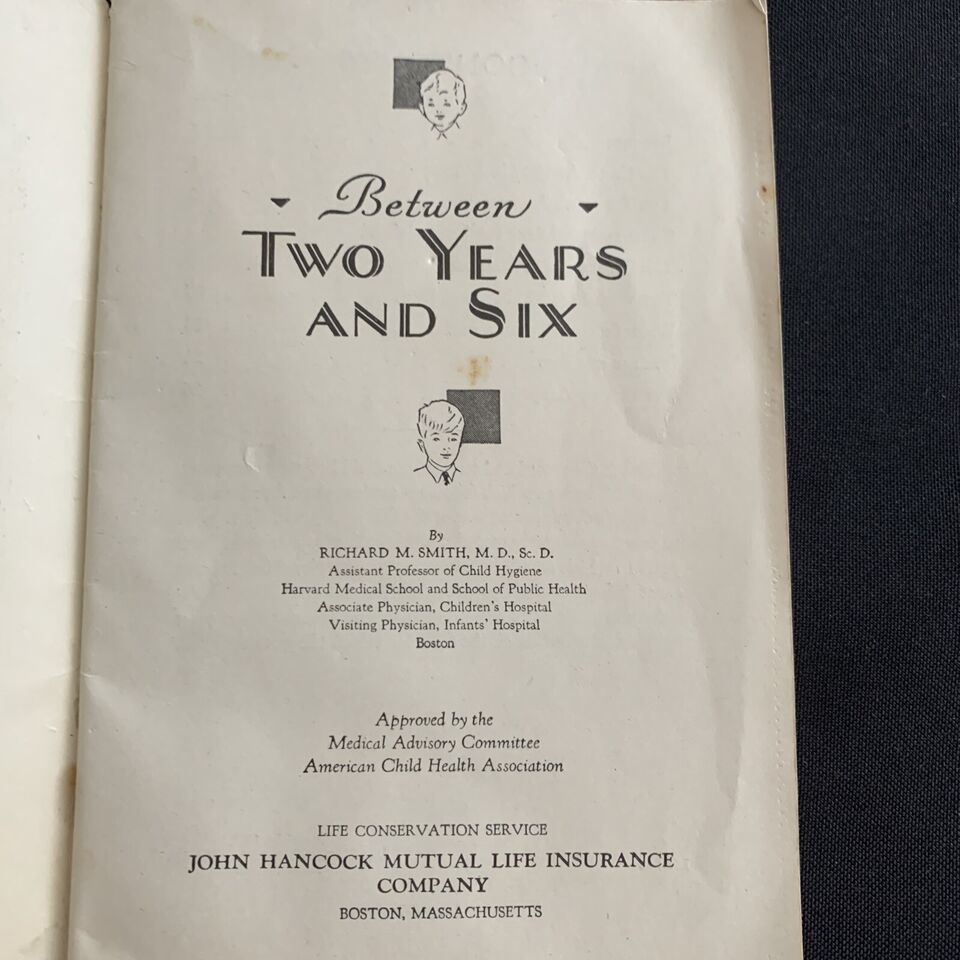 vintage booklet: Between TWO YEARS AND SIX, 1929, 27 pages John Hancock Insuranc