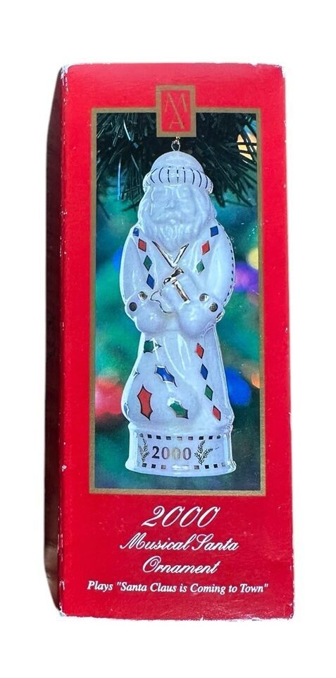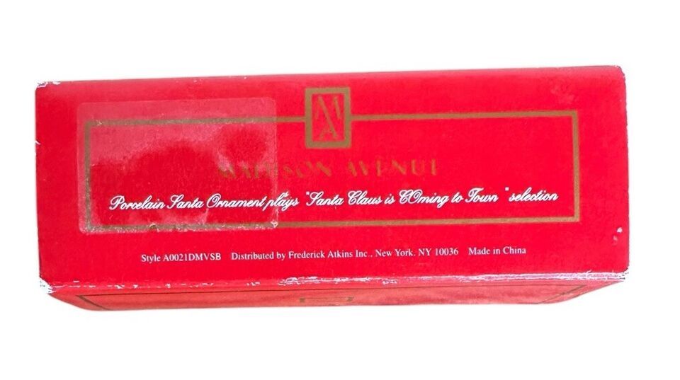 Vintage 2000 Madison Avenue Porcelain Santa Figurine Christmas Ornament NO MUSIC 5" in Original Box