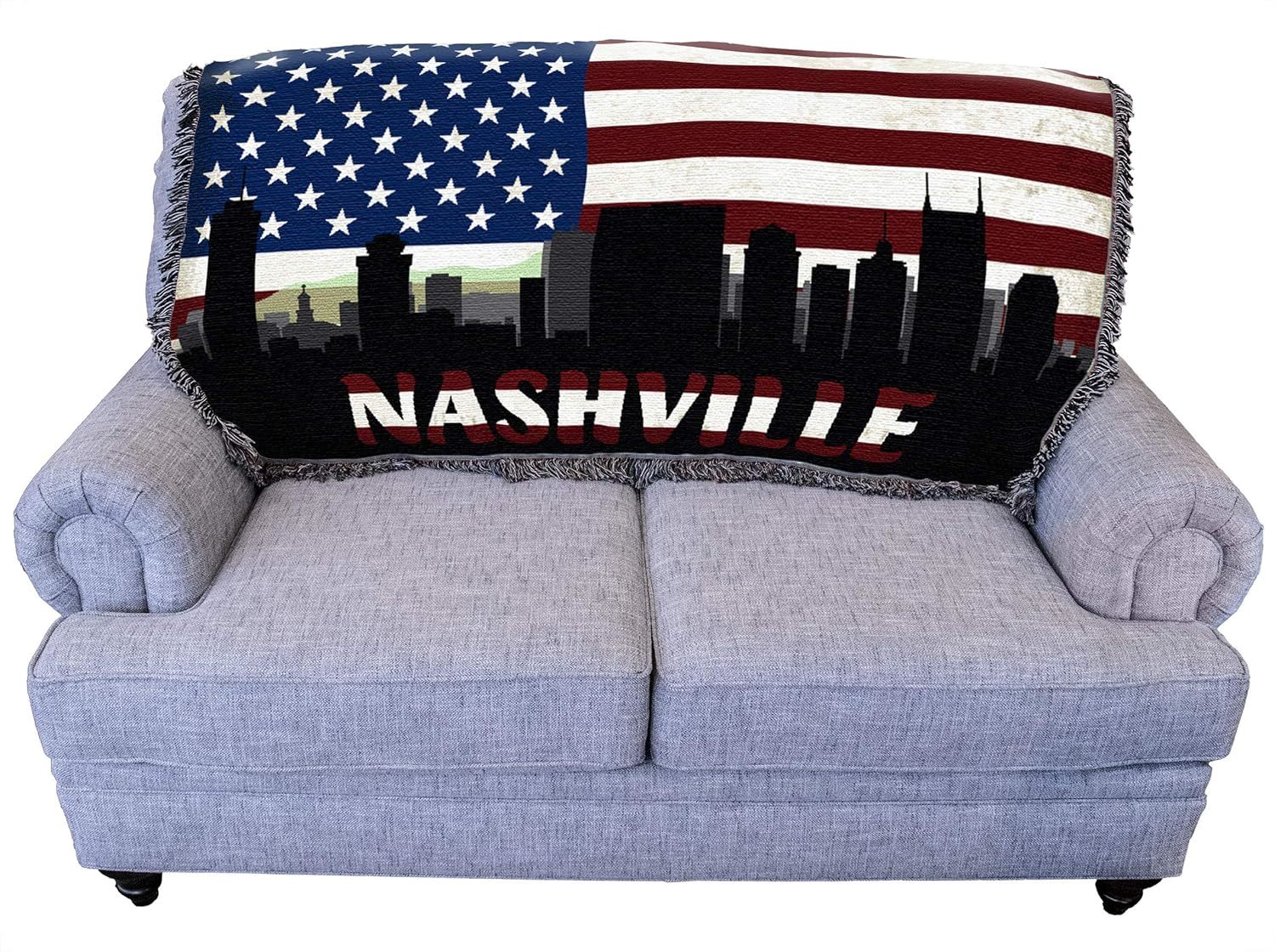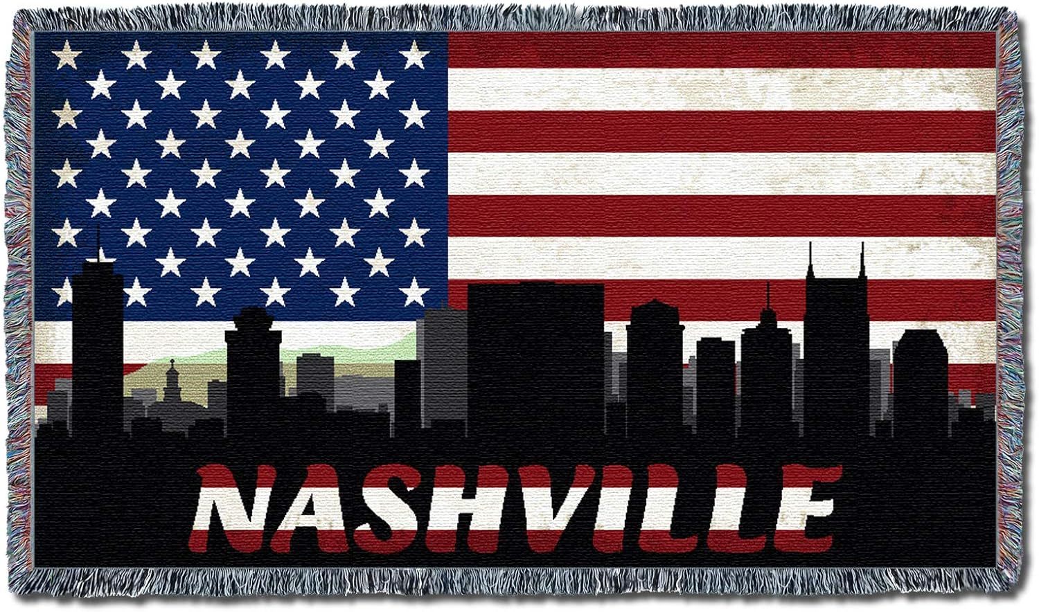 Tennessee - Nashville - City American Flag Blanket - Gift Tapestry Throw For