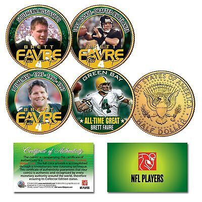 BRETT FAVRE Life Times Career 24K Gold Plated U.S. JFK Half Dollar 4-Coin Set