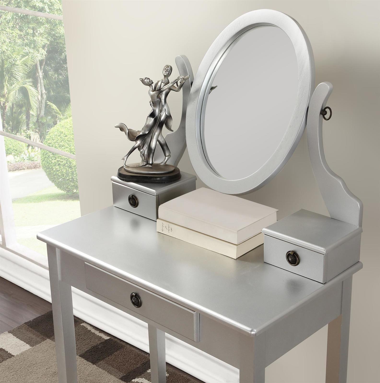 Moniys Wood Moniya Makeup Vanity Table and Stool Set, Silver
