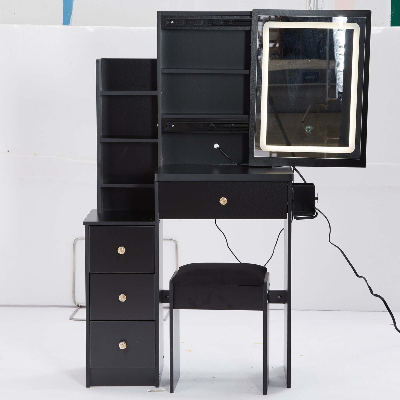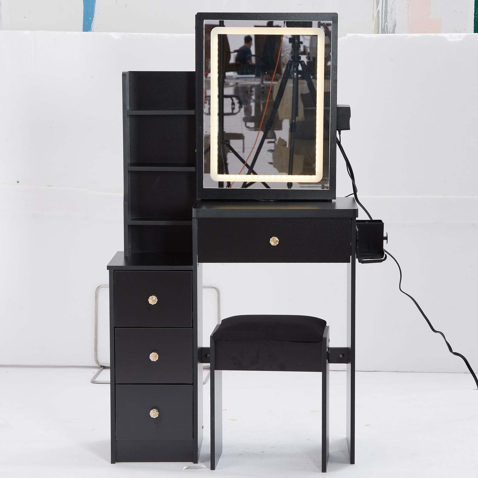 [2 AC powers and 2 USB ports built-in socket]: Equipped with 2 built-in AC powers and 2 USB ports socket, it can conveniently charge phones and tablets while you are dressing up. Two AC power sources allow you use both a curler and a hair dryer simultaneously.