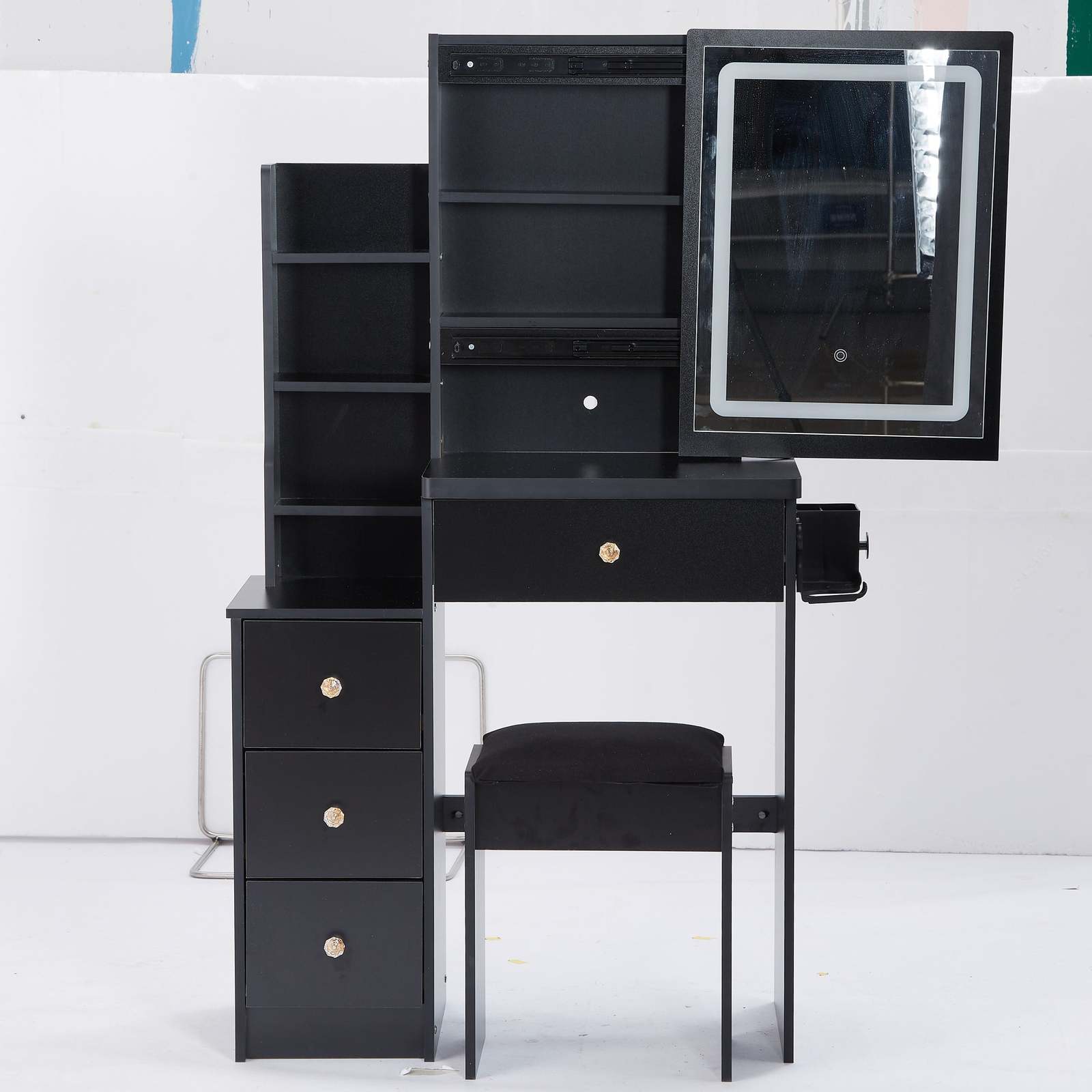[Includes a padded dressing table stool]: The packaging includes a dressing table and a padded stool. You will no longer need to make additional purchases. This will greatly save you time and delivery cost.