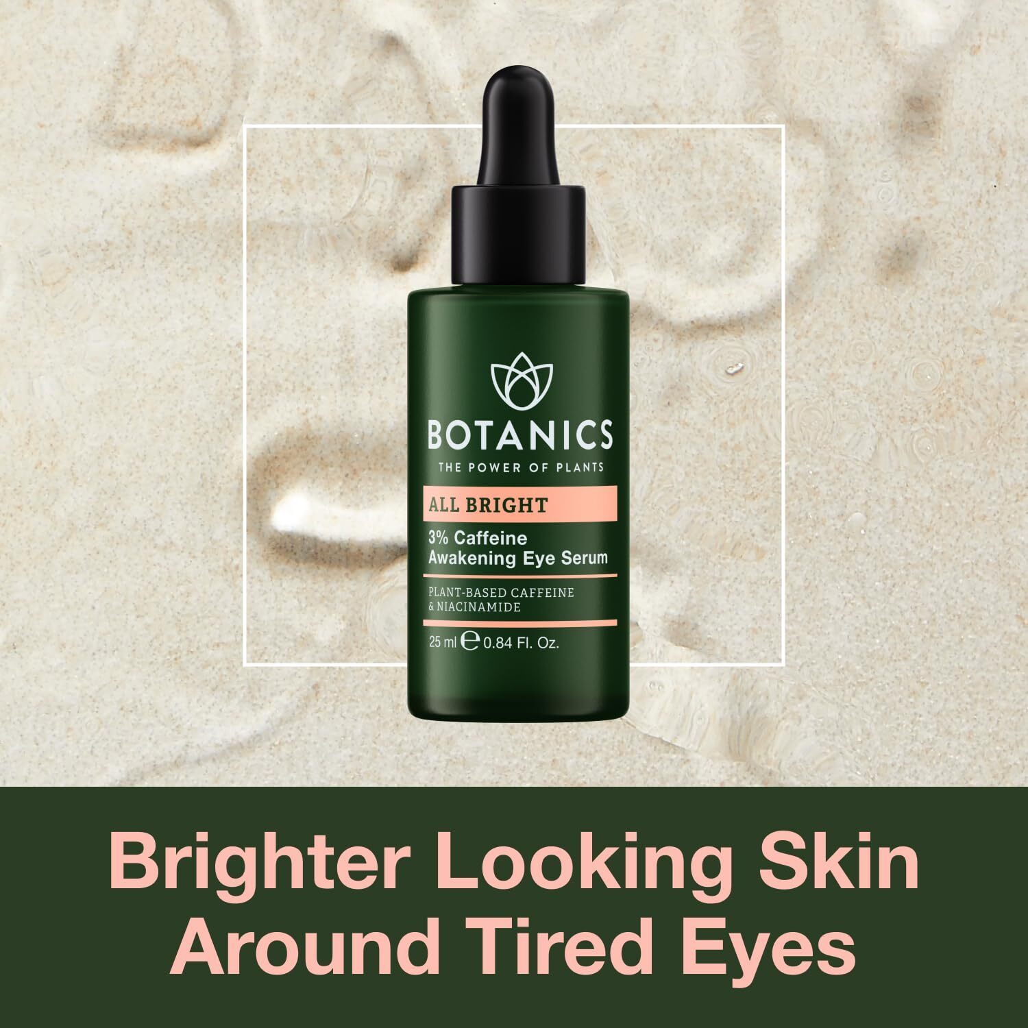 Botanics All Bright Caffeine Eye Serum - 3% Caffeine Awakening Under Eye Serum for Dark Circles and Puffiness - Refresh Brighten Tired Eyes - Vegan Cruelty Free (0.84 Fl Oz)