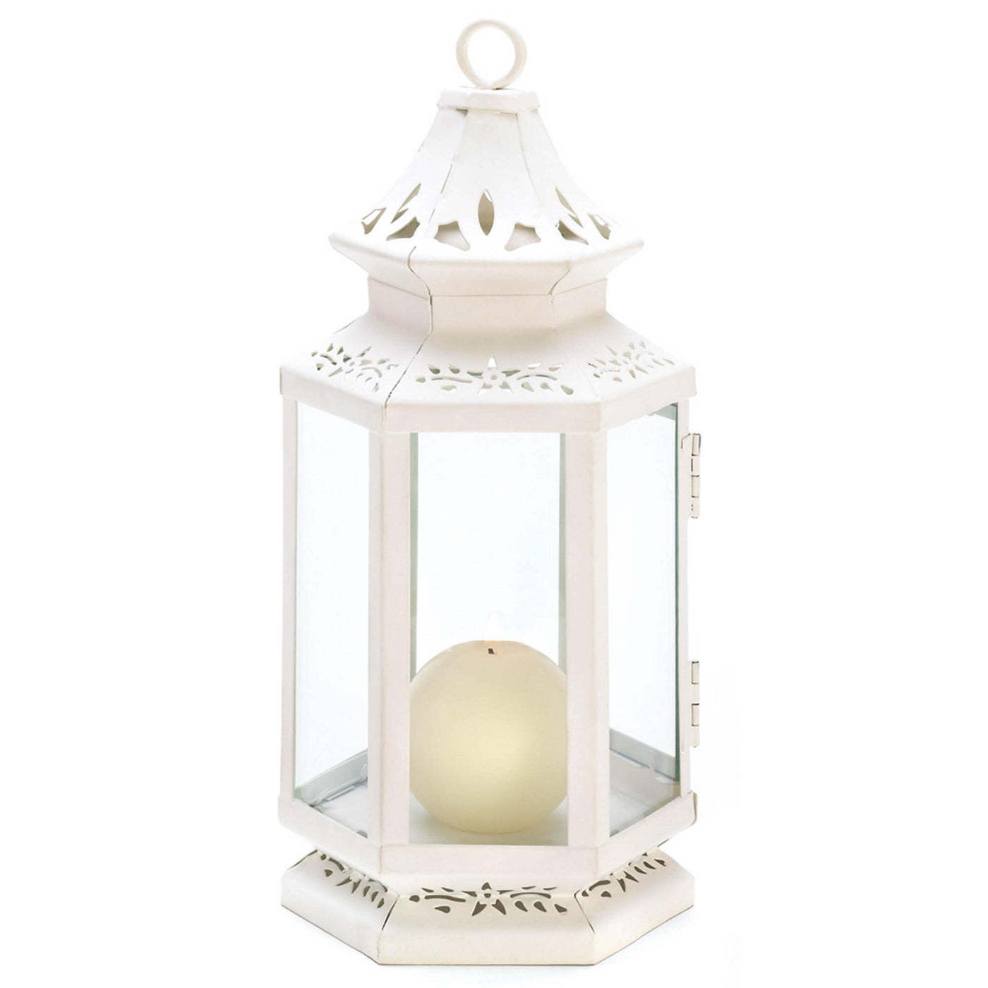 Floral metal cutouts, six glass panels, and a rustic flair makes this Victorian style lantern a statement antique piece in any home, patio, party, or wedding. The front glass panels open for easy addition or removable of your choice of candle or LED lighting, creating a customizable glow. Both beautiful and functional, this lantern creates a striking ambience wherever it is hung or placed.