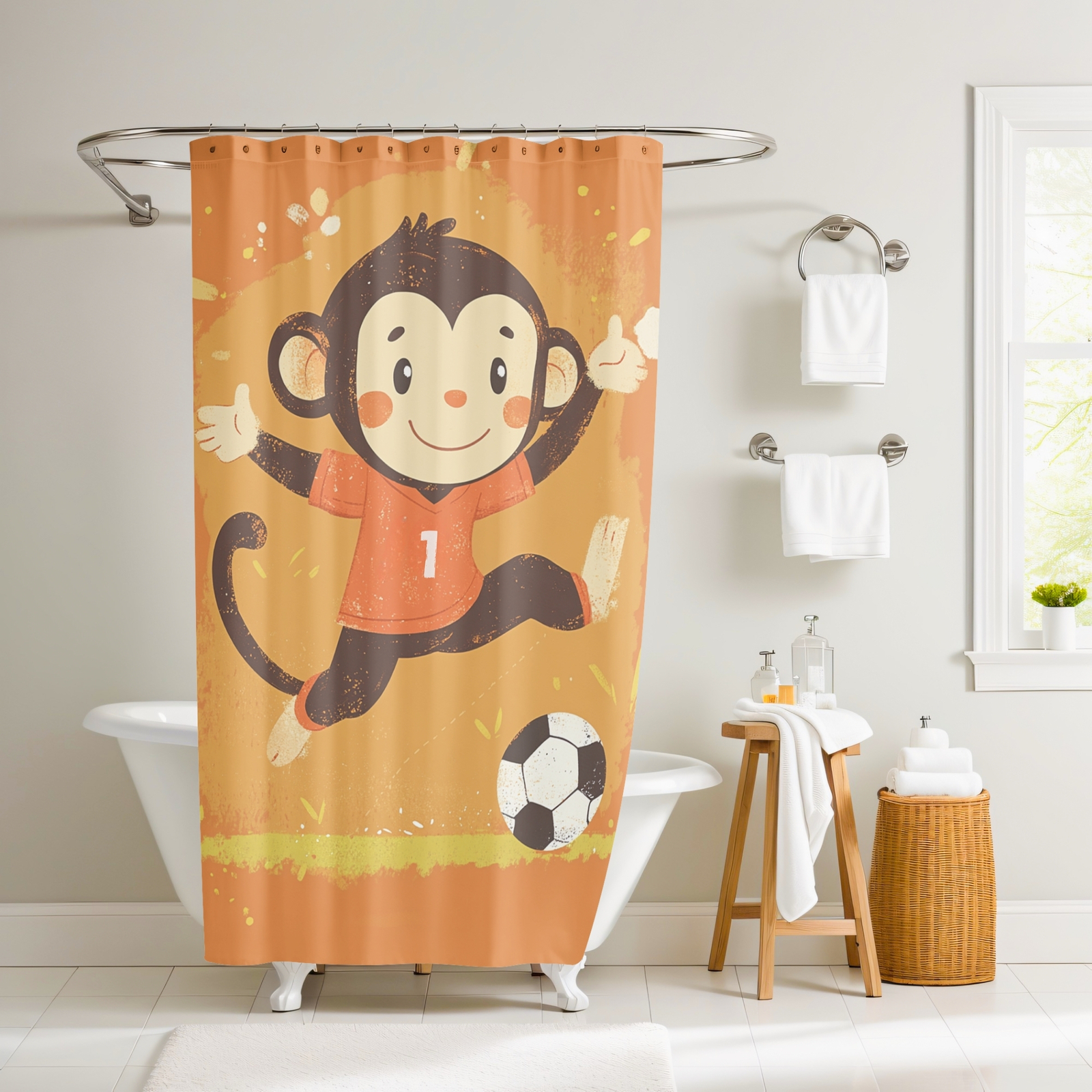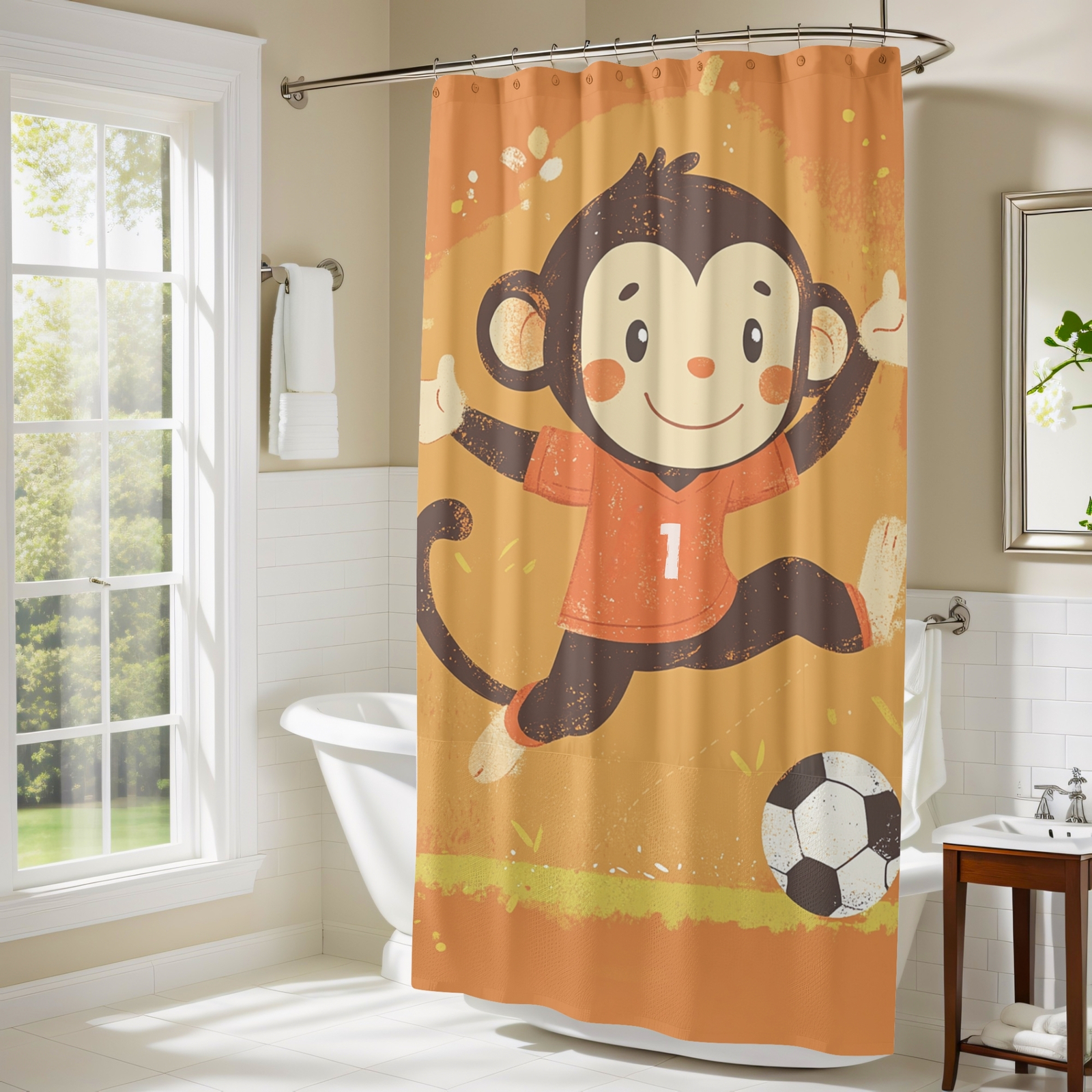 Maximus the Midfielder Monkey Shower Curtain by Dancing Littles Jungle