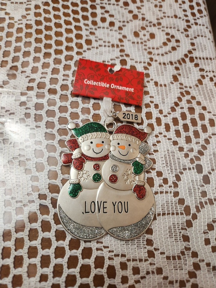 New Metal Christmas Snowman Ornament Letters LOVE YOU 2018