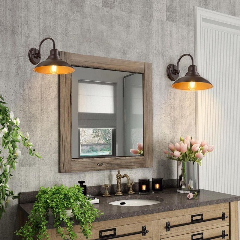 2-Pack Bronze Gooseneck Barn Lights, Farmhouse Wall Sconces with E26 Socket