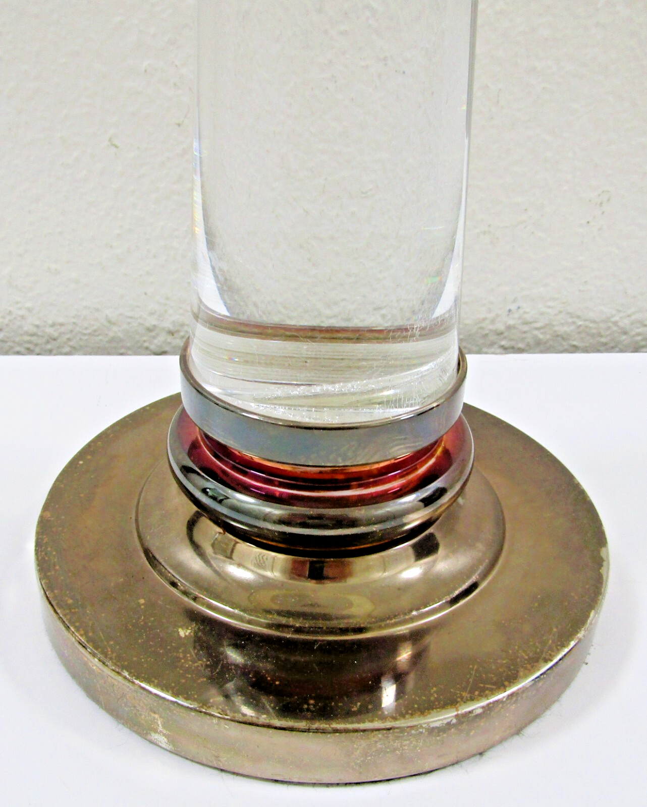 Pair of Robert Abbey Lucidity Silver and Crystal Table Lamps with Shades and Finials