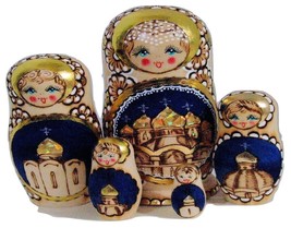 5pcs Hand Made Russian Nesting Doll of russian Churches Burned Wood Style (7&...