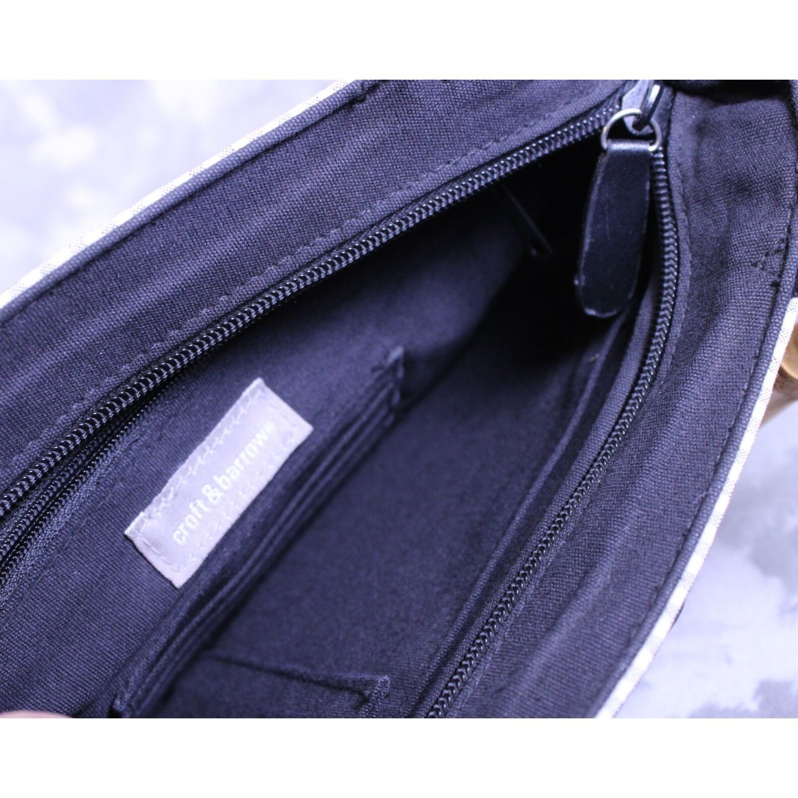 CROFT & BARROWS Checkered Bamboo Handle Statement Purse W Embroidered Flipflops