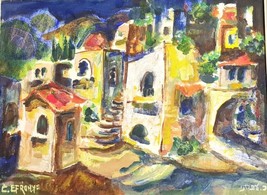 Catriel Efrony Listed Israeli Colorful Oil Painting Houses of Safed, 34.5 x 46.5
