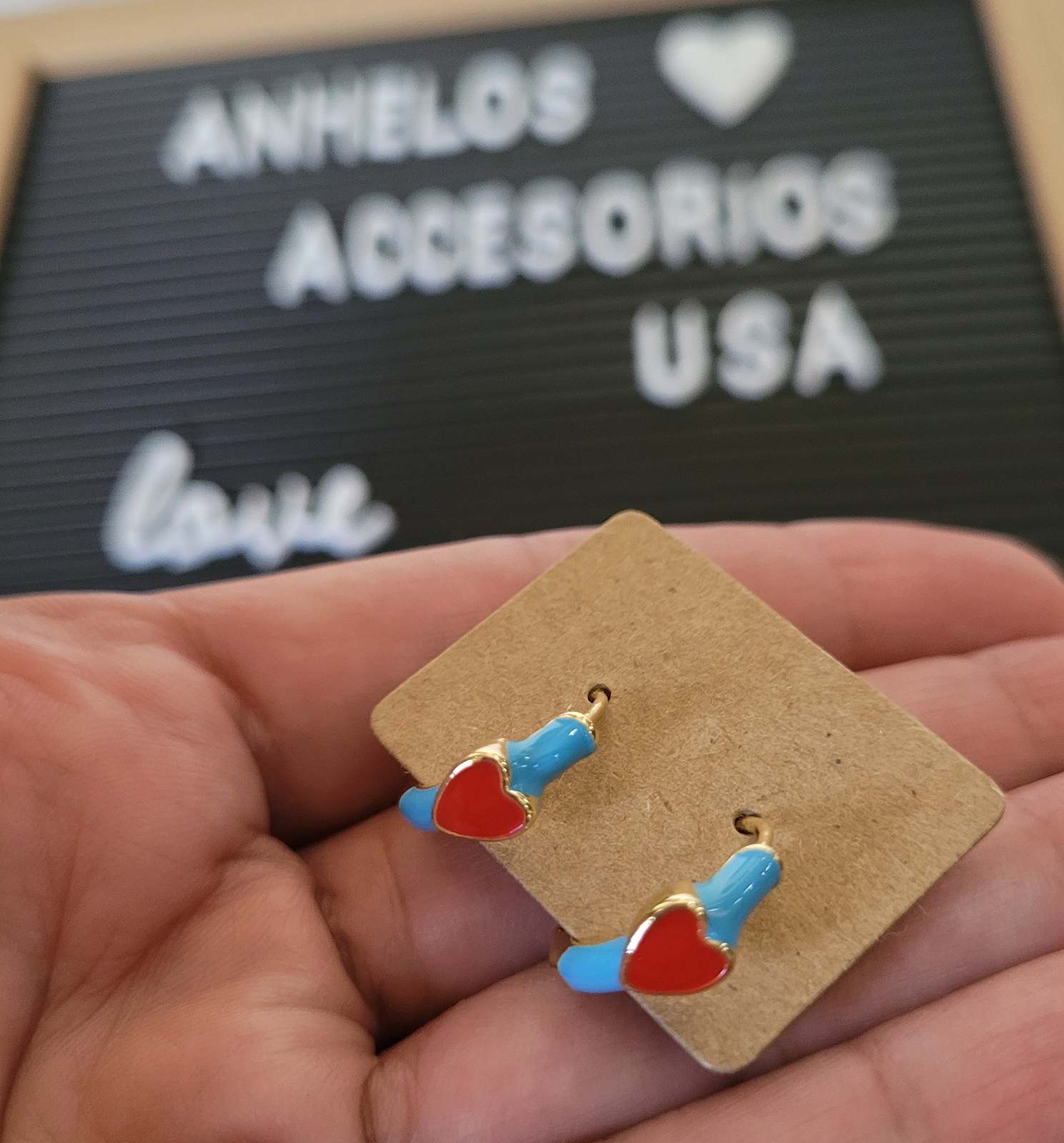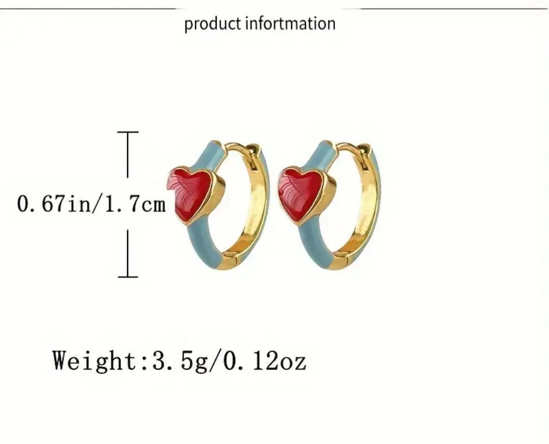 Vintage Red Glaze Drop Love Earrings Personality Huggie Earrings 18K Gold Plated Ornament for Women