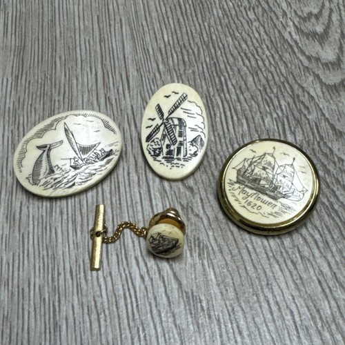 4 Vintage Scrimshaw Ship Whale Lighthouse and similar items