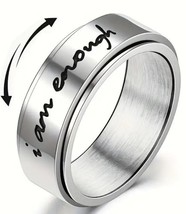 Inspirational i am enough Stainless Steel Anxiety Wide Band Spinning Ring Size 8