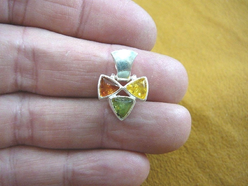 P18-134) Orange green yellow AMBER triangle 3 stone .925 Sterling silver pendant