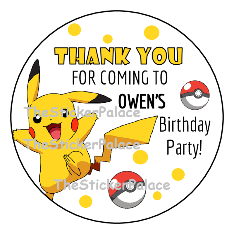 12 Personalized Pokemon Inspired Birthday Party Favor Stickers, Labels, 2.5"